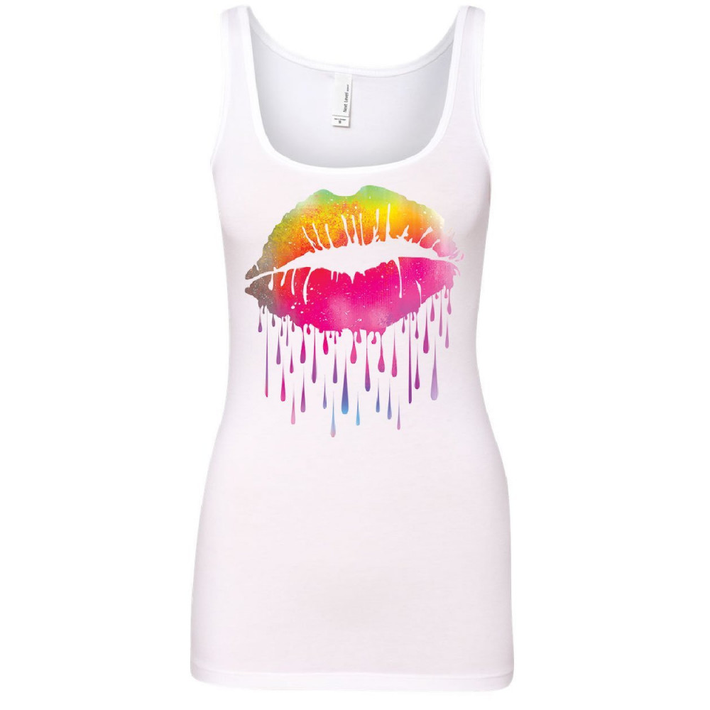 DRIPPING NEON LIPS women's tank top lips like sugar kiss love sexy melt top white