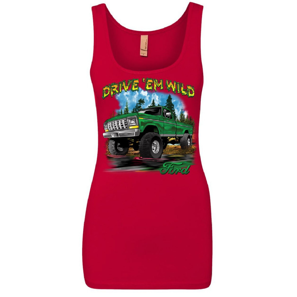 DRIVE 'EM WILD women's tank top ford pickup trucks f-150 offroad mud ride top red