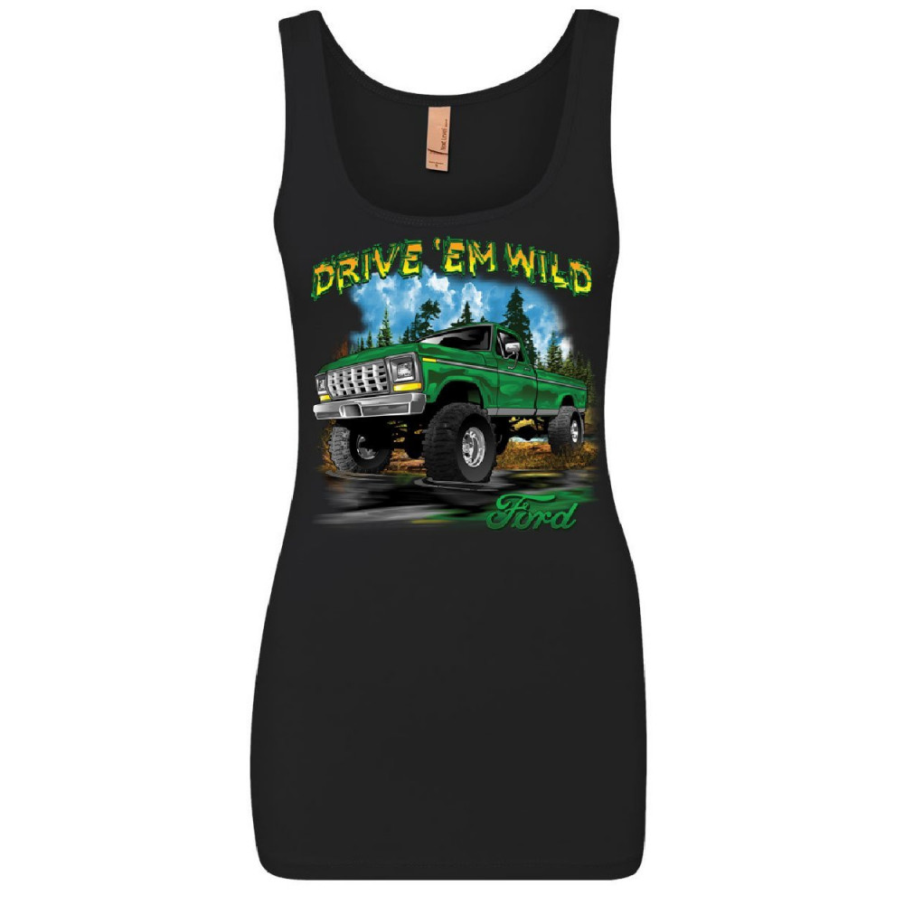 DRIVE 'EM WILD women's tank top ford pickup trucks f-150 offroad mud ride top black