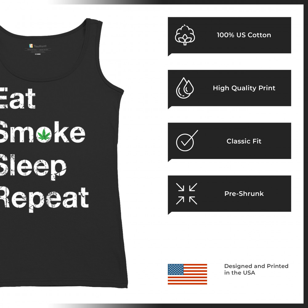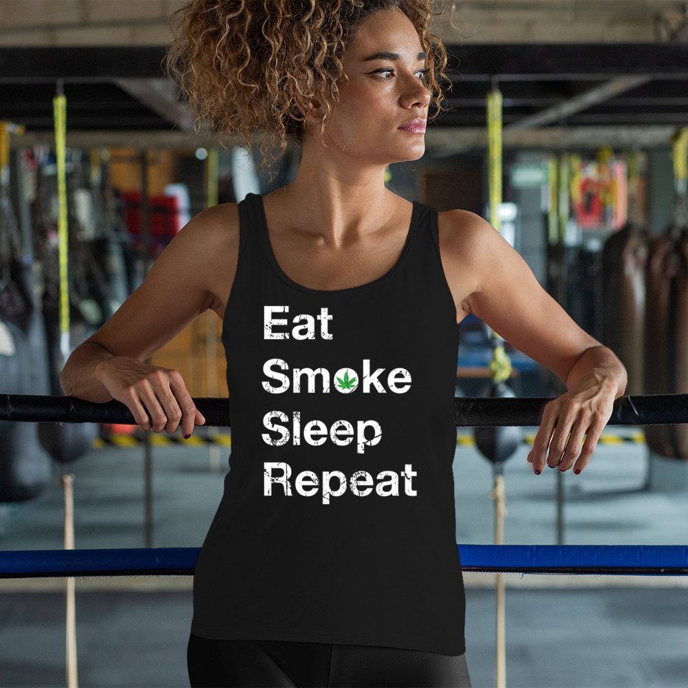 Eat Smoke Sleep Repeat design with weed leaf humor. Great for 420 fans, stoners, sesh lovers, smokers, and relaxed cannabis vibes.