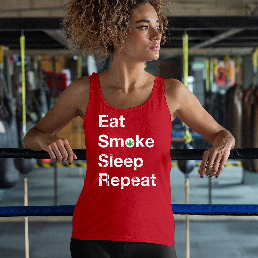 Eat Smoke Sleep Repeat design with weed leaf humor. Great for 420 fans, stoners, sesh lovers, smokers, and relaxed cannabis vibes.