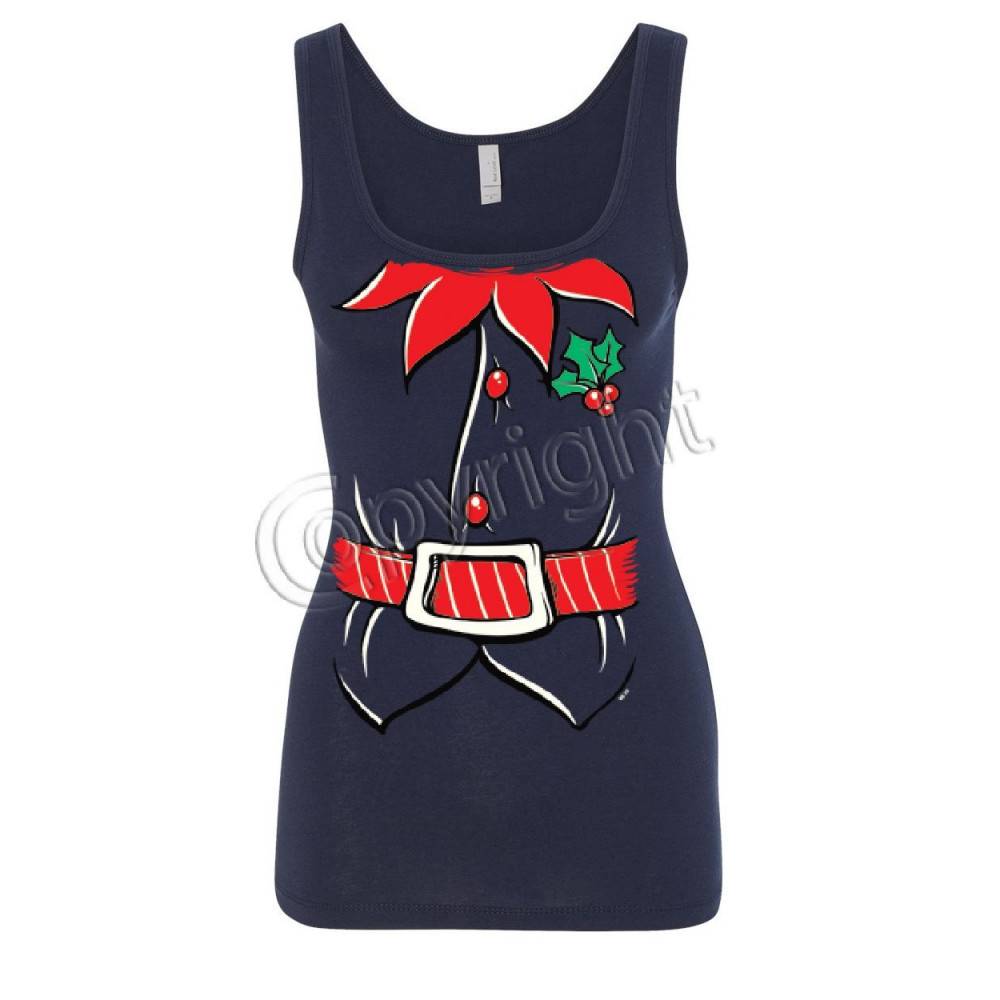 ELF SHIRT women's tank top funny christmas xmas new year holiday spirit top navy blue