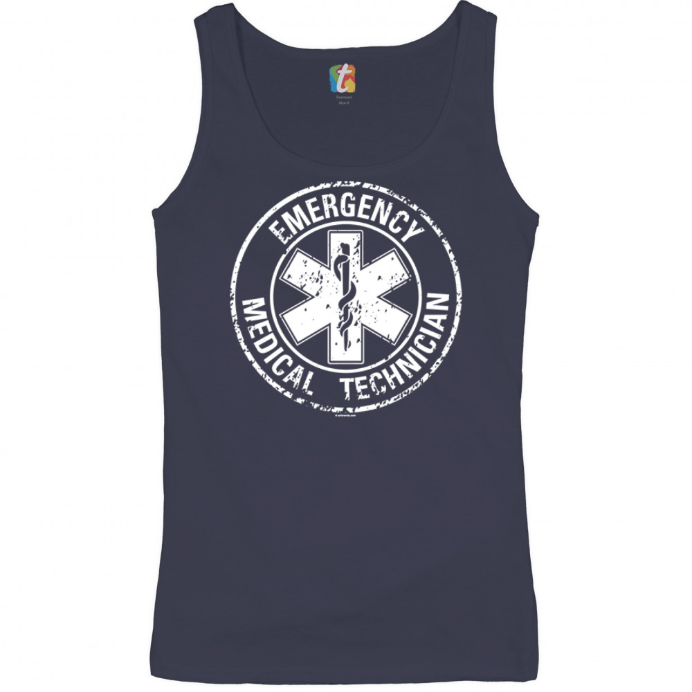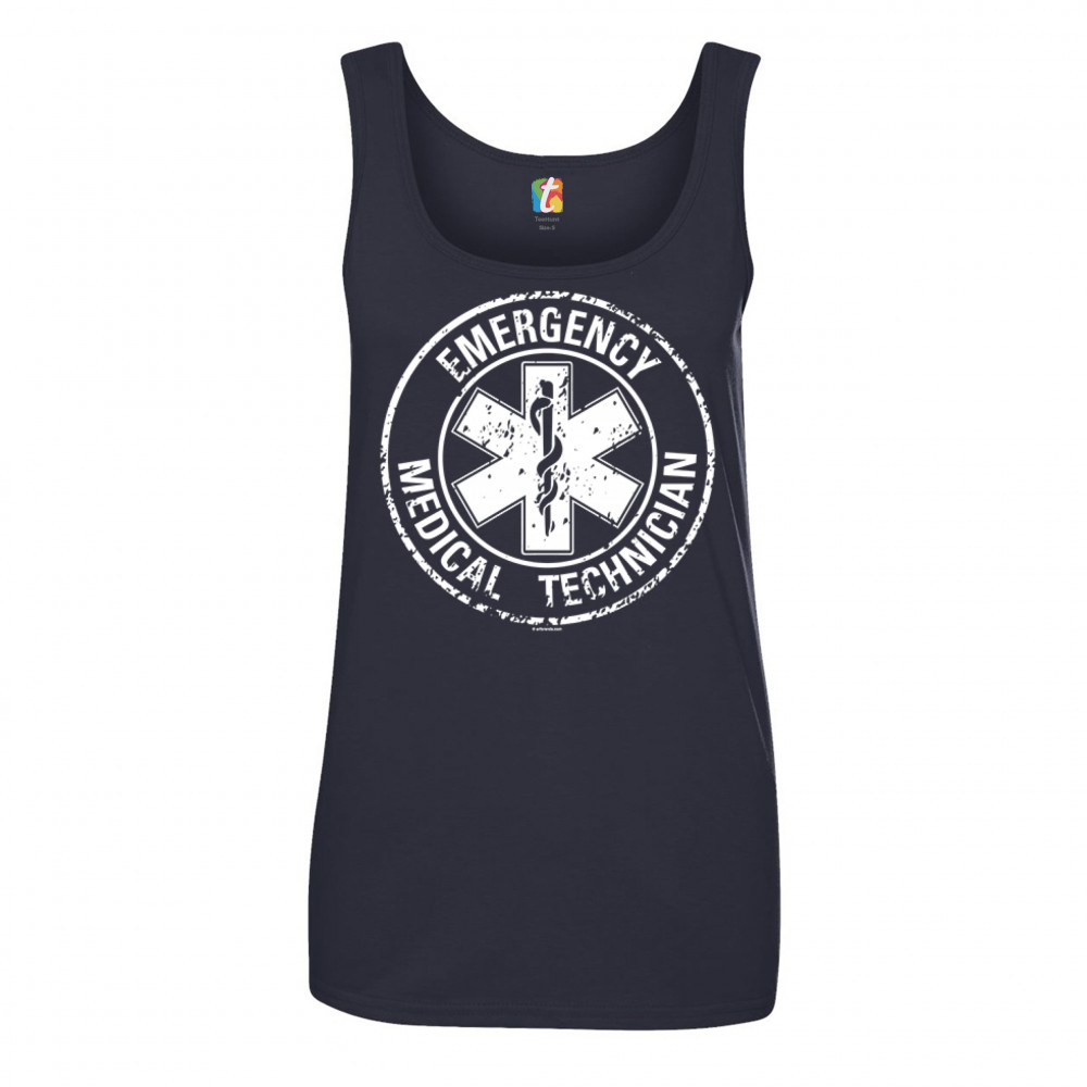 EMERGENCY MEDICAL TECHNICIAN women's tank top emt distressed star of life navy blue