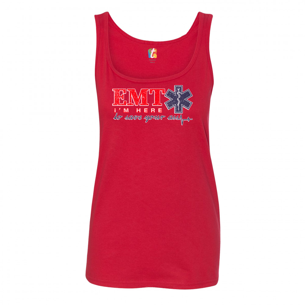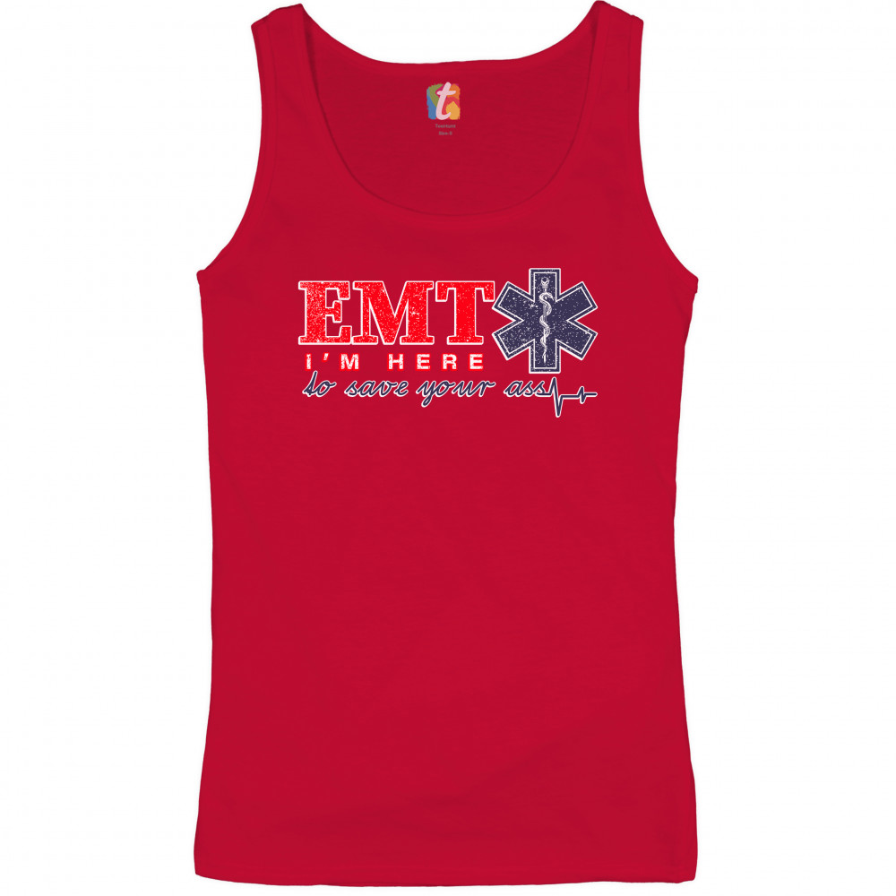 A funny print saying "EMT I'm Here to Save Your Ass". To the right of "EMT" there is the Star of Life, the worldwide recognized symbol of emergency medical services, with the Rod of Asclepius inside of it. A great choice as a gift for a first responder.