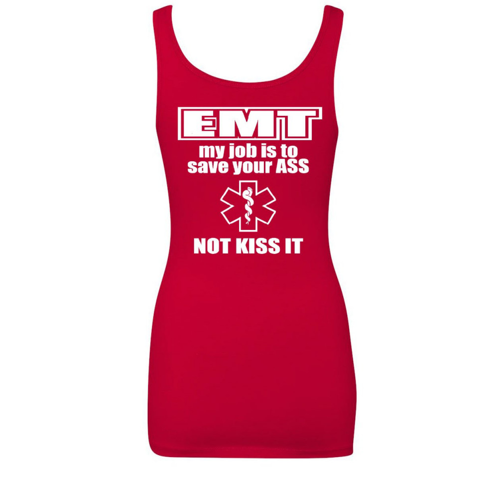 EMT MY JOB IS TO SAVE YOUR ASS women's tank top funny medic top red