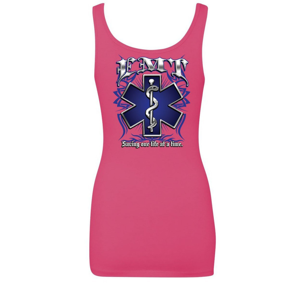 EMT SAVING ONE LIFE AT A TIME women's tank top paramedic first responders top pink