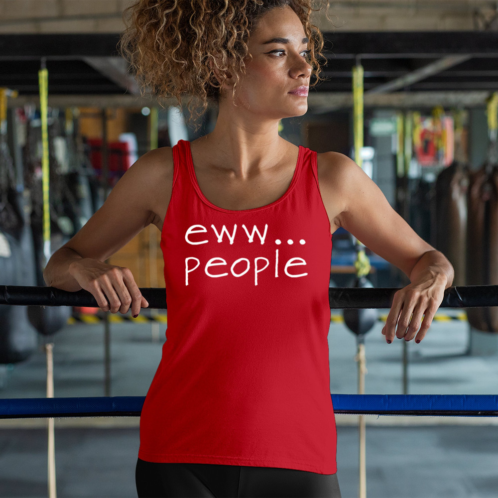 Embrace your personal space with a design that says 'less people, more peace' in a humorous, minimalist style.
