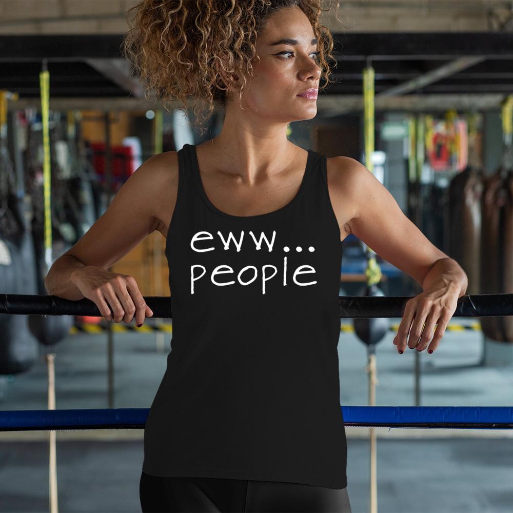Embrace your personal space with a design that says 'less people, more peace' in a humorous, minimalist style.
