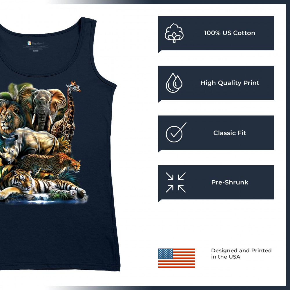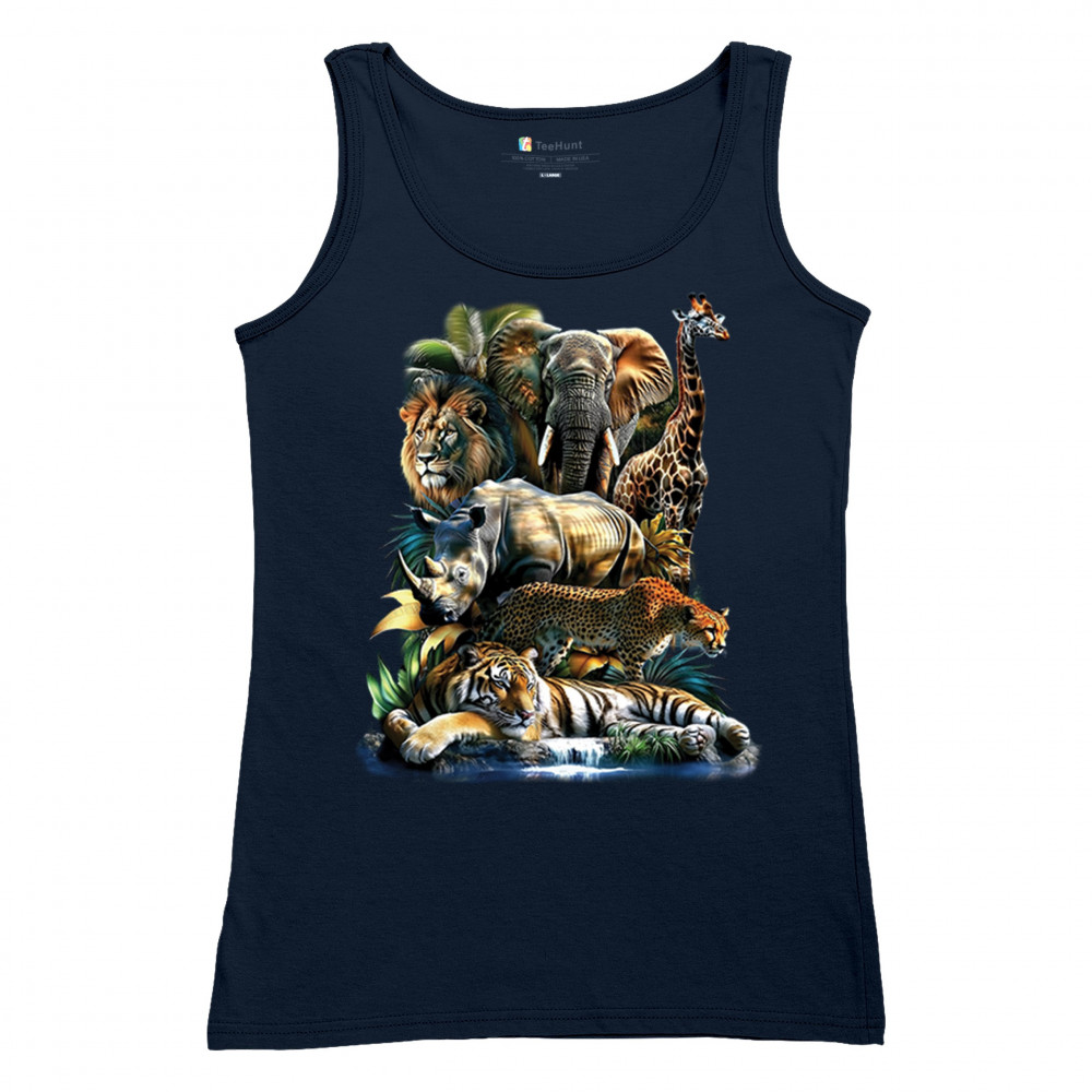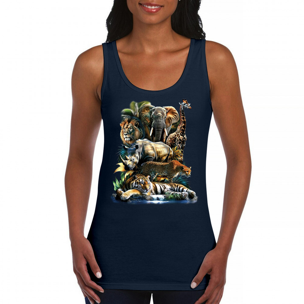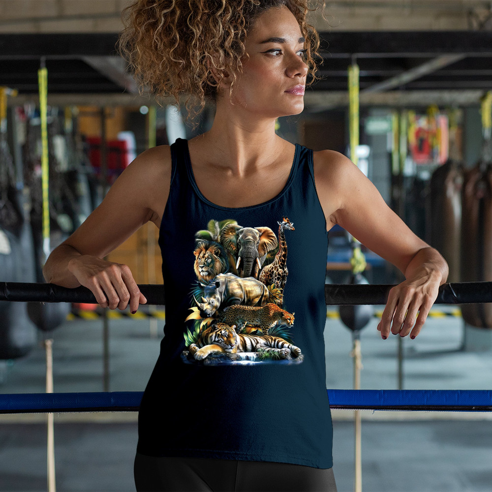 Wildlife design with lion, tiger, giraffe, rhino, cheetah, and elephant. Perfect for animal lovers and safari fans who embrace nature’s fierce spirit.