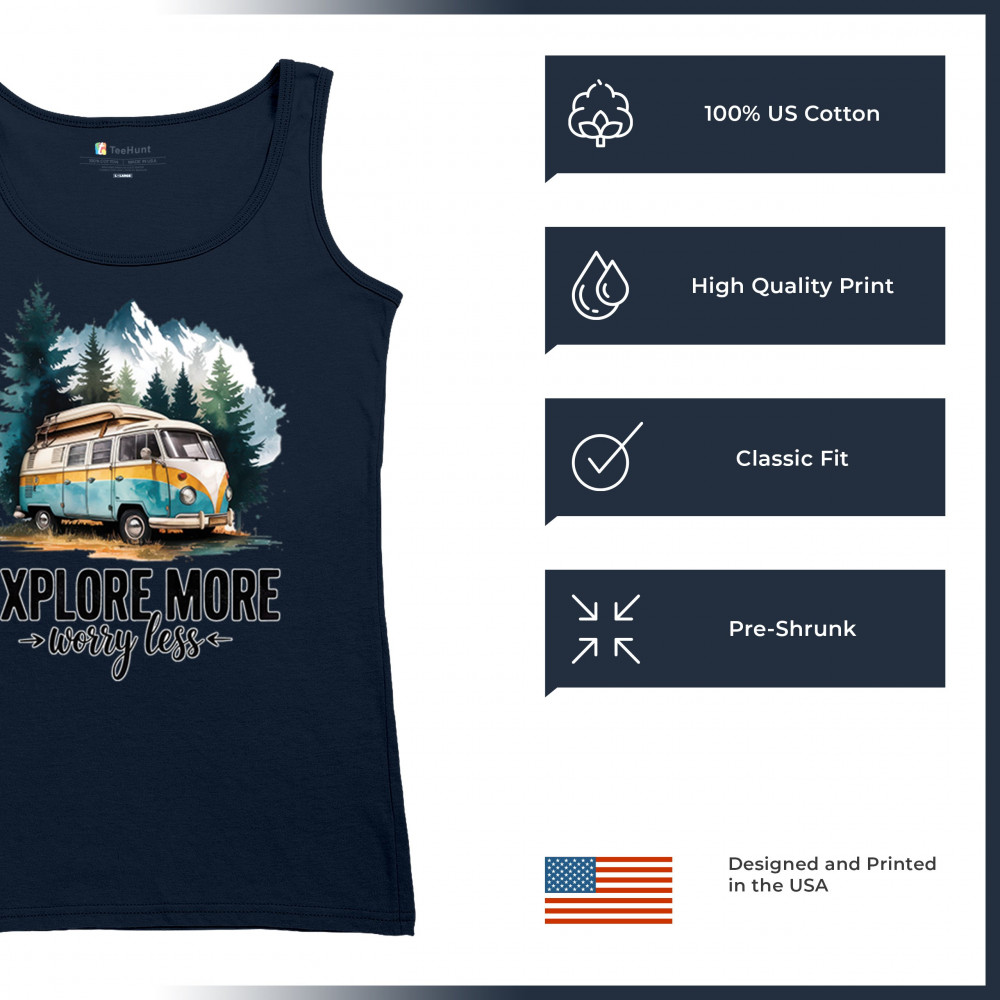 Explore More Worry Less is made for the outdoor soul—celebrating trail lovers, weekend hikers, and national park explorers. Whether you're into off-grid adventures or glamping with family, this design fits your lifestyle. Embrace nature, campfire moments, and wilderness vibes with a look built for your next escape.