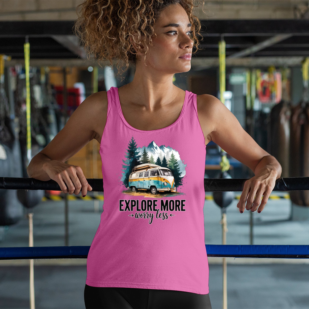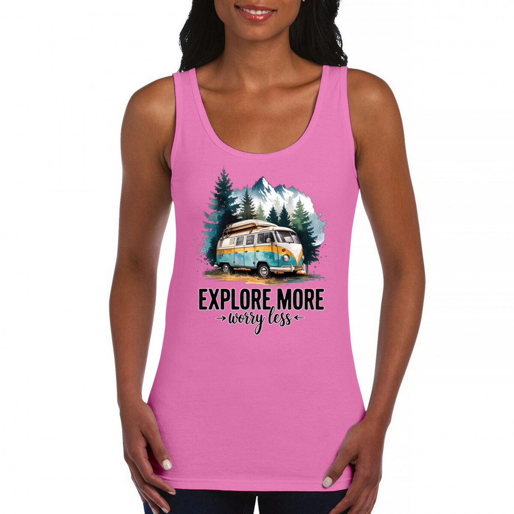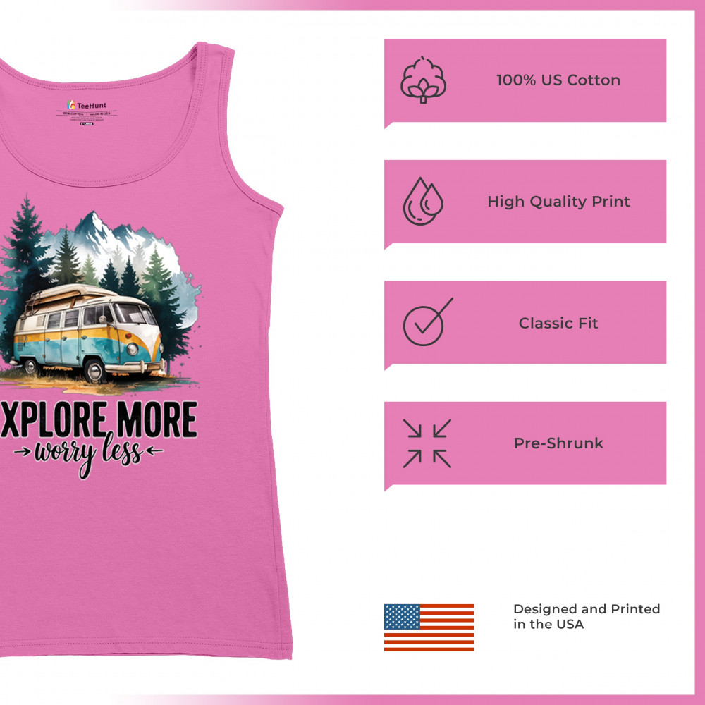 Explore More Worry Less is made for the outdoor soul—celebrating trail lovers, weekend hikers, and national park explorers. Whether you're into off-grid adventures or glamping with family, this design fits your lifestyle. Embrace nature, campfire moments, and wilderness vibes with a look built for your next escape.