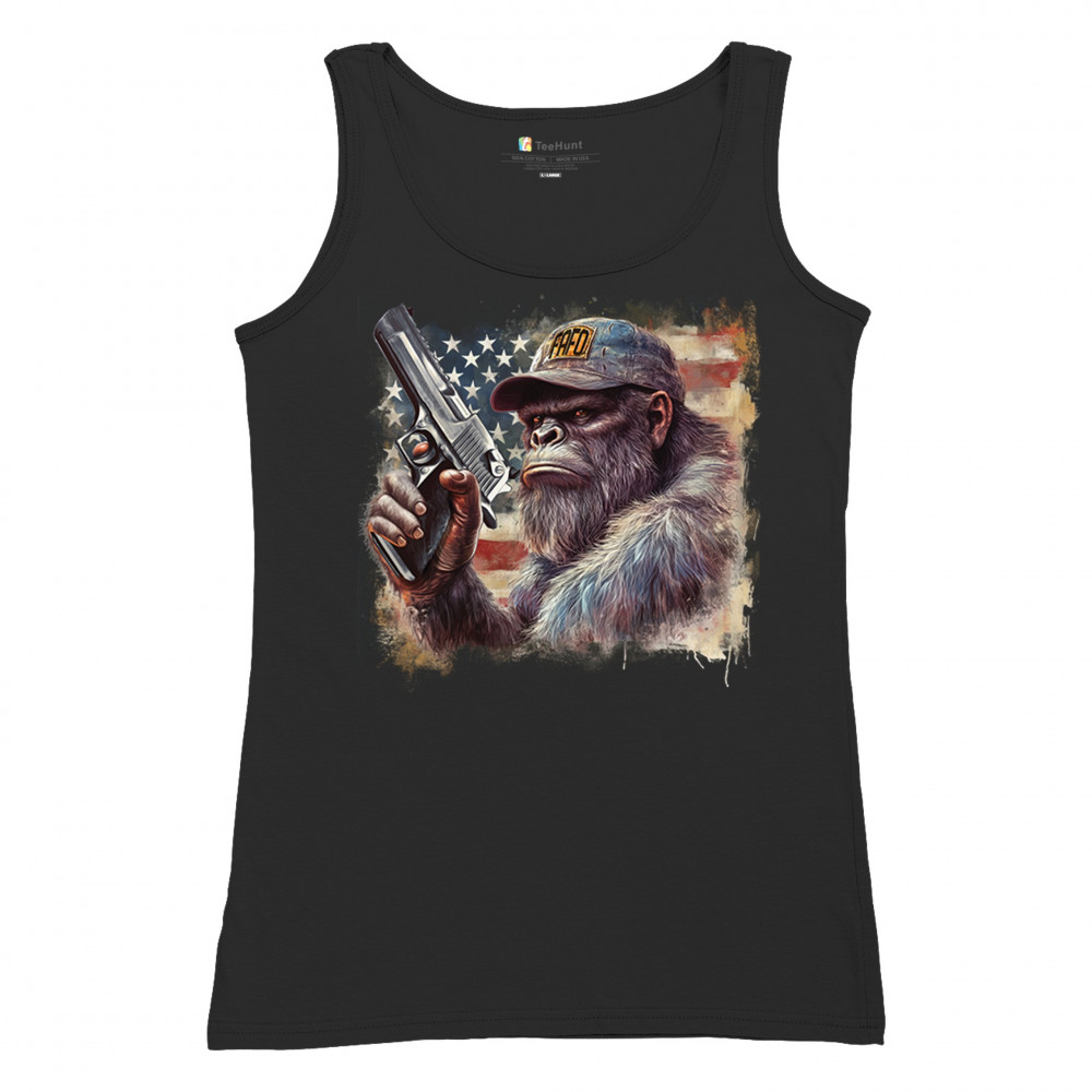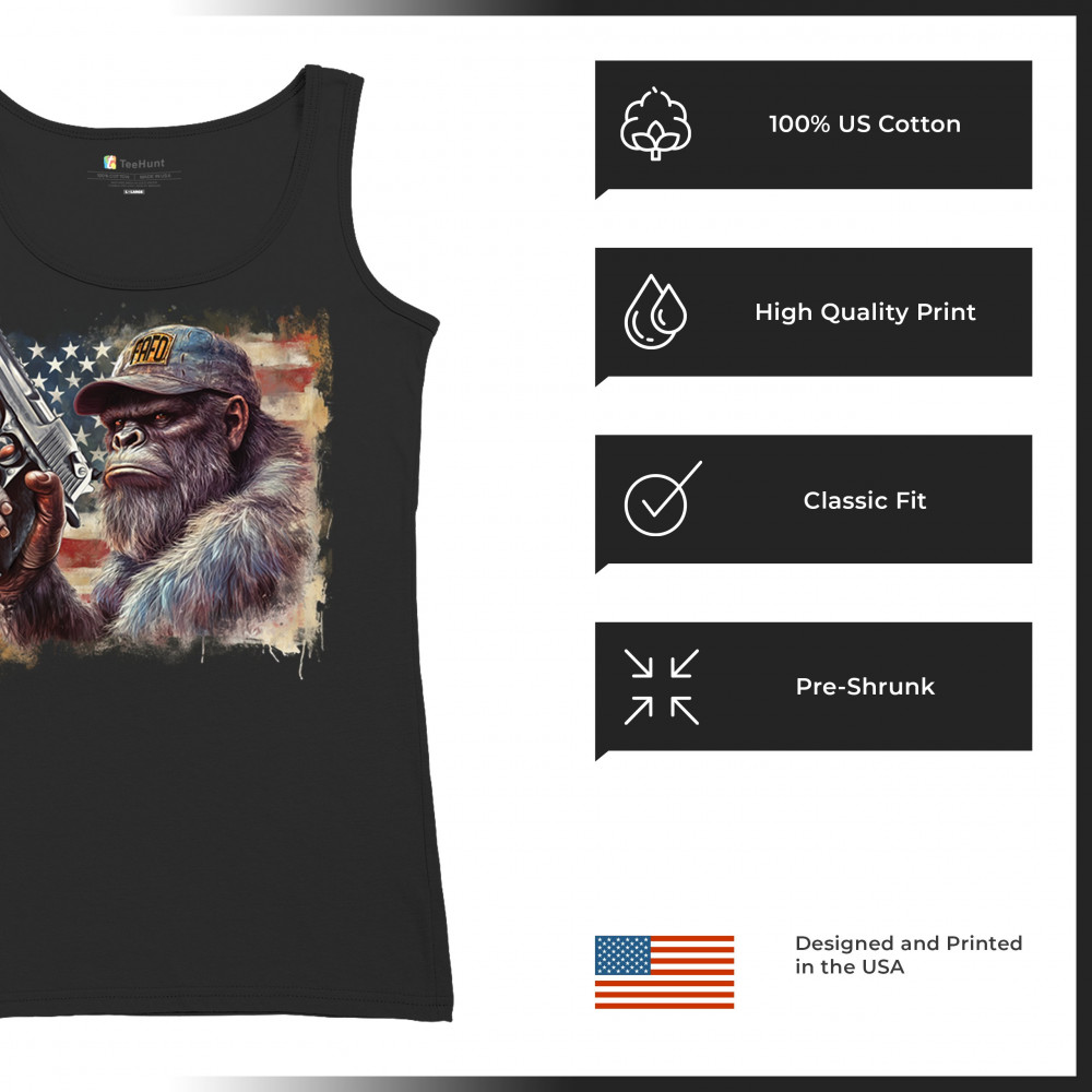 Show your Second Amendment pride with this bold patriotic gorilla design featuring the American flag and a firearm. Perfect for gun rights supporters, veterans, and freedom lovers.