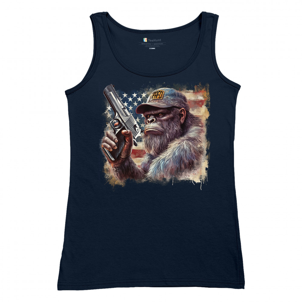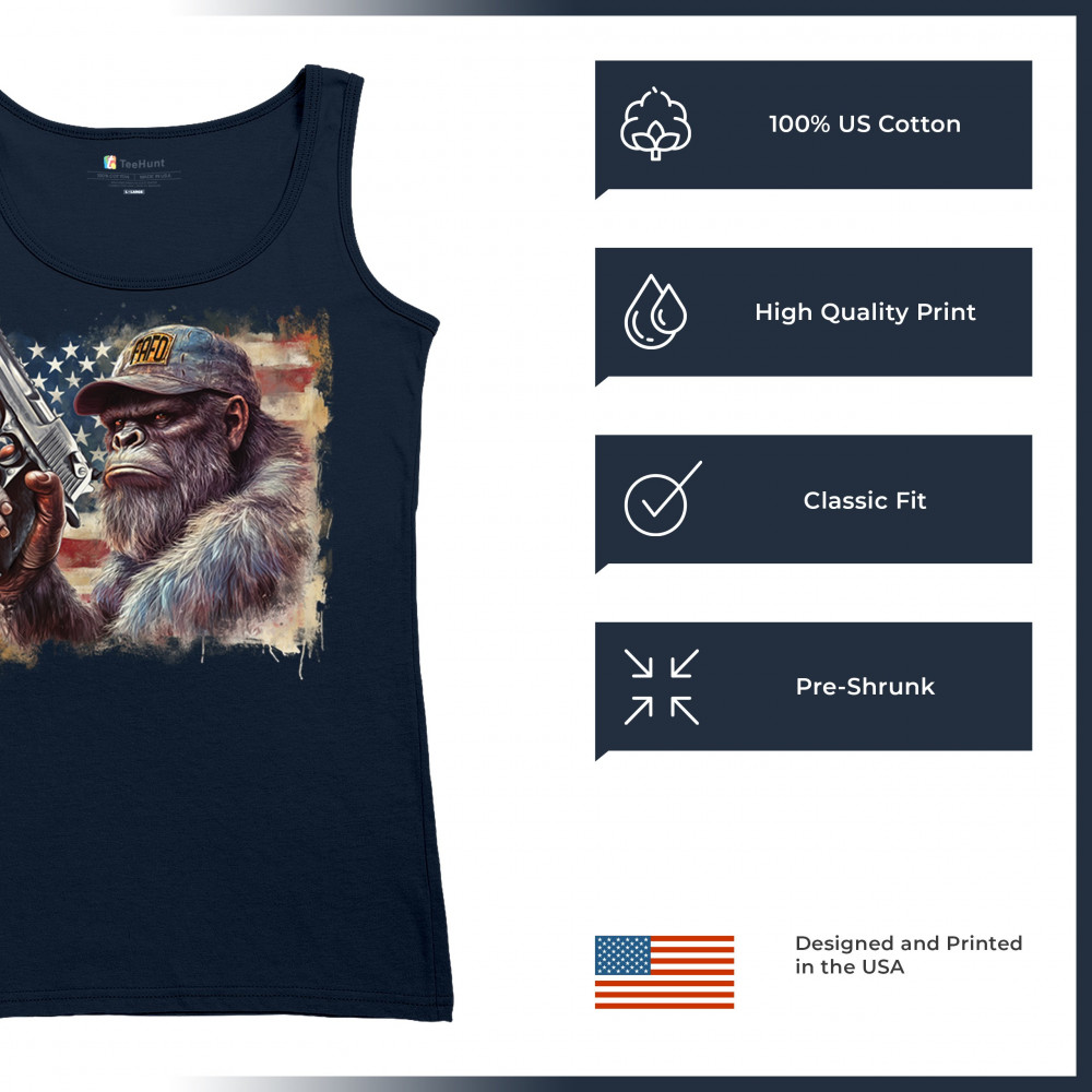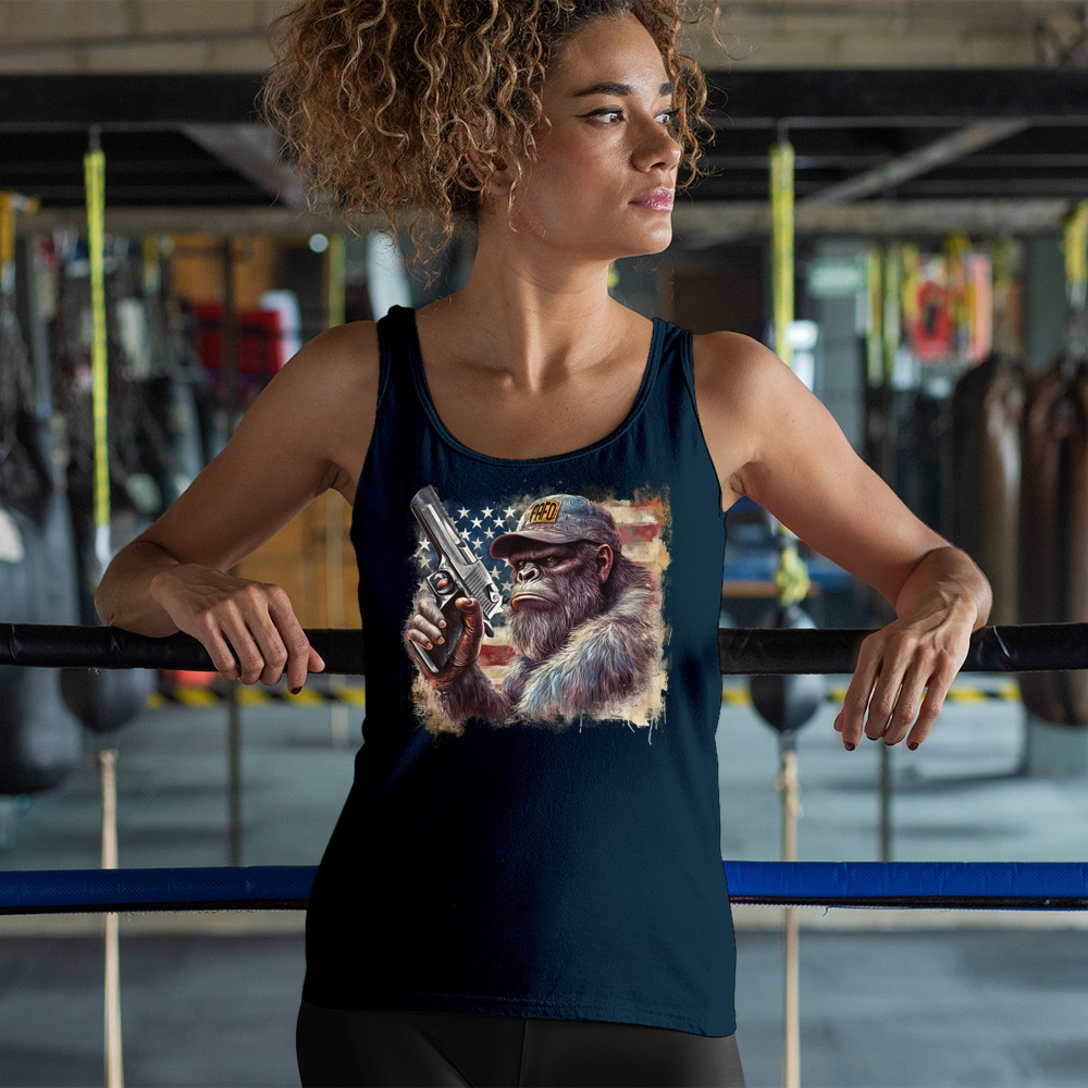 Show your Second Amendment pride with this bold patriotic gorilla design featuring the American flag and a firearm. Perfect for gun rights supporters, veterans, and freedom lovers.