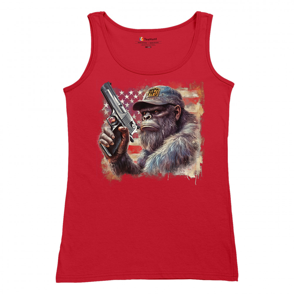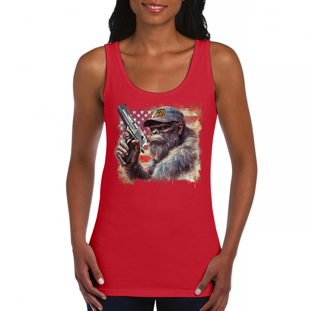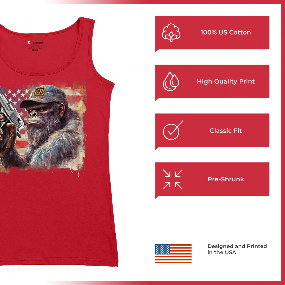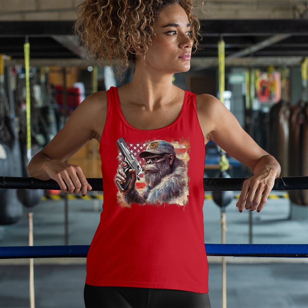 Show your Second Amendment pride with this bold patriotic gorilla design featuring the American flag and a firearm. Perfect for gun rights supporters, veterans, and freedom lovers.