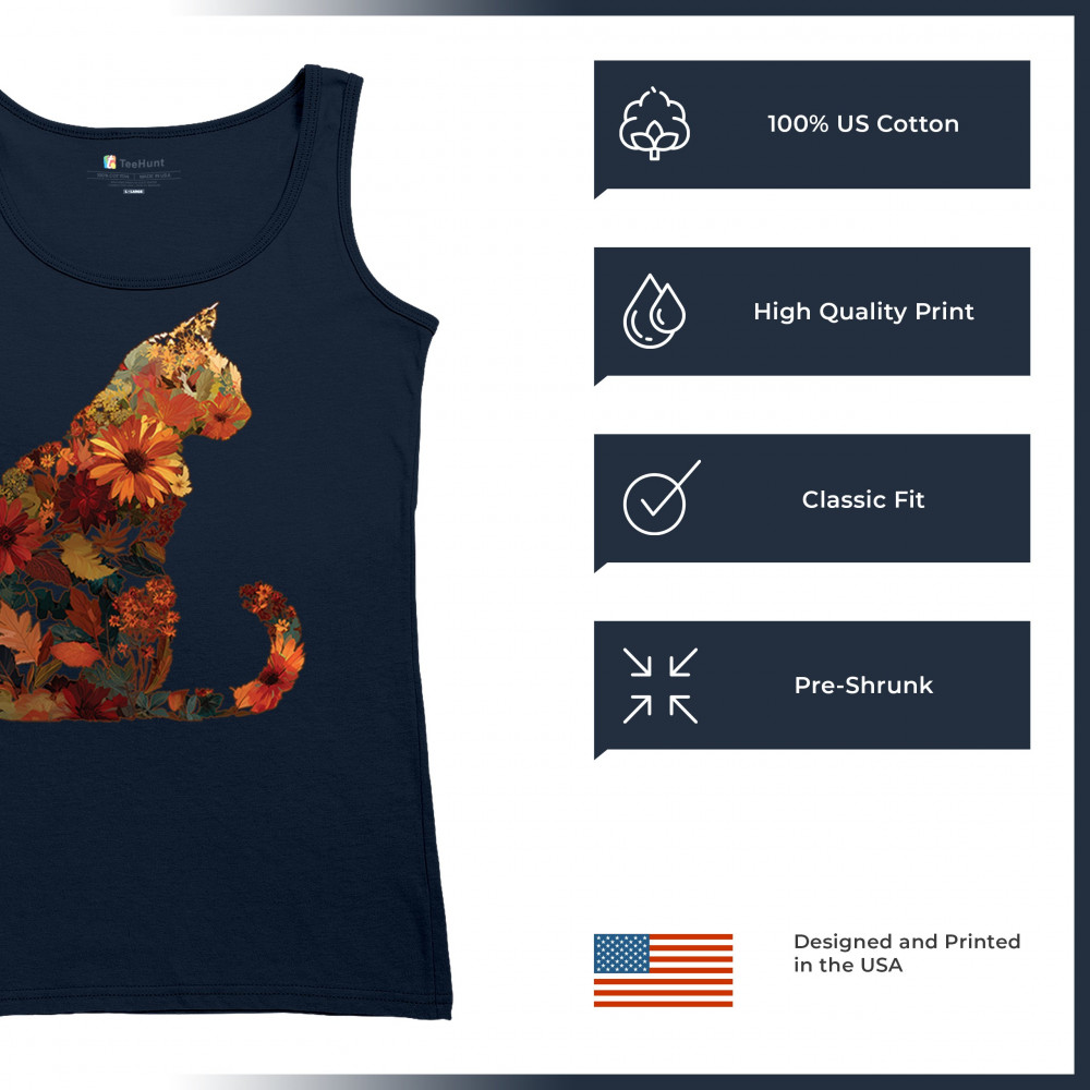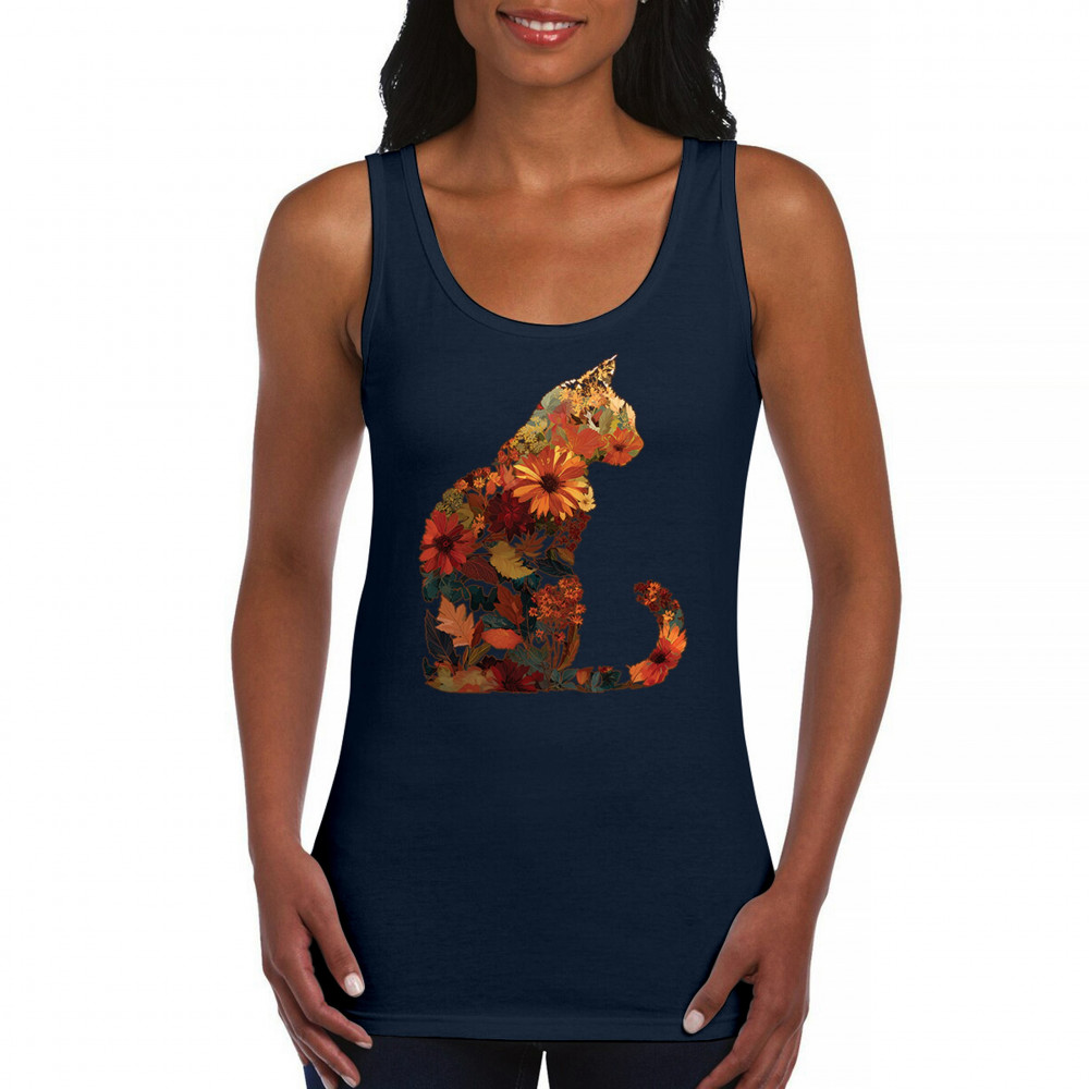 Cozy fall cat design with leaves and florals. Perfect for pet lovers, cat moms, rustic farmhouse style, pumpkin patch outings, and autumn harvest.