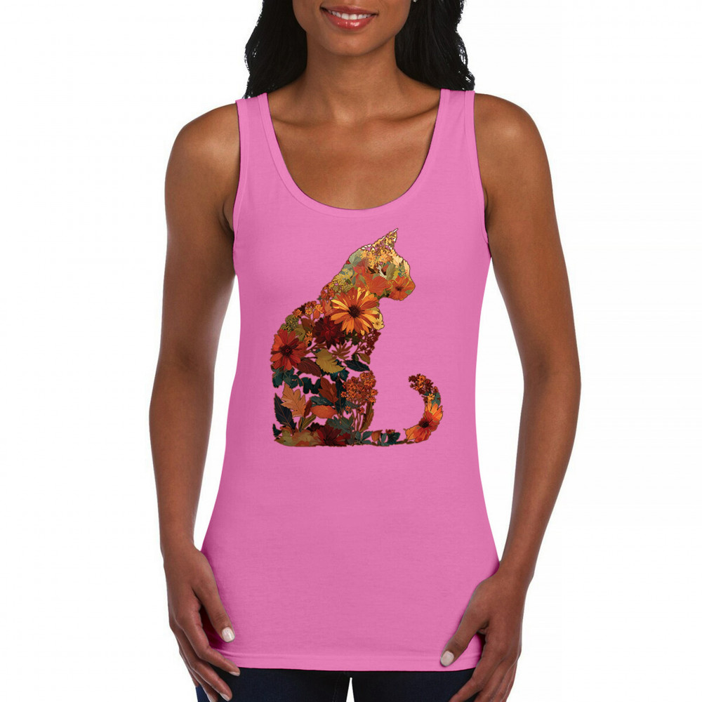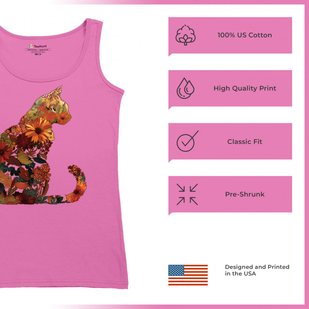 Cozy fall cat design with leaves and florals. Perfect for pet lovers, cat moms, rustic farmhouse style, pumpkin patch outings, and autumn harvest.