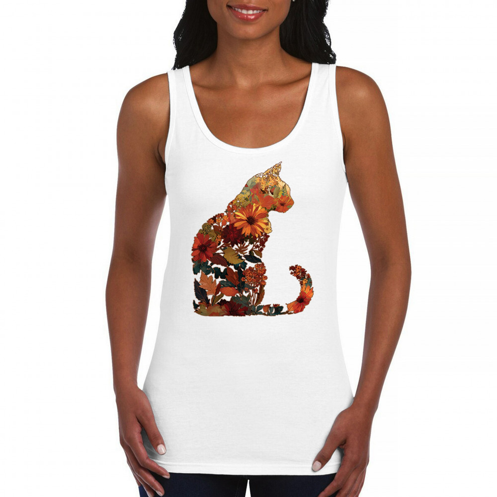 Cozy fall cat design with leaves and florals. Perfect for pet lovers, cat moms, rustic farmhouse style, pumpkin patch outings, and autumn harvest.