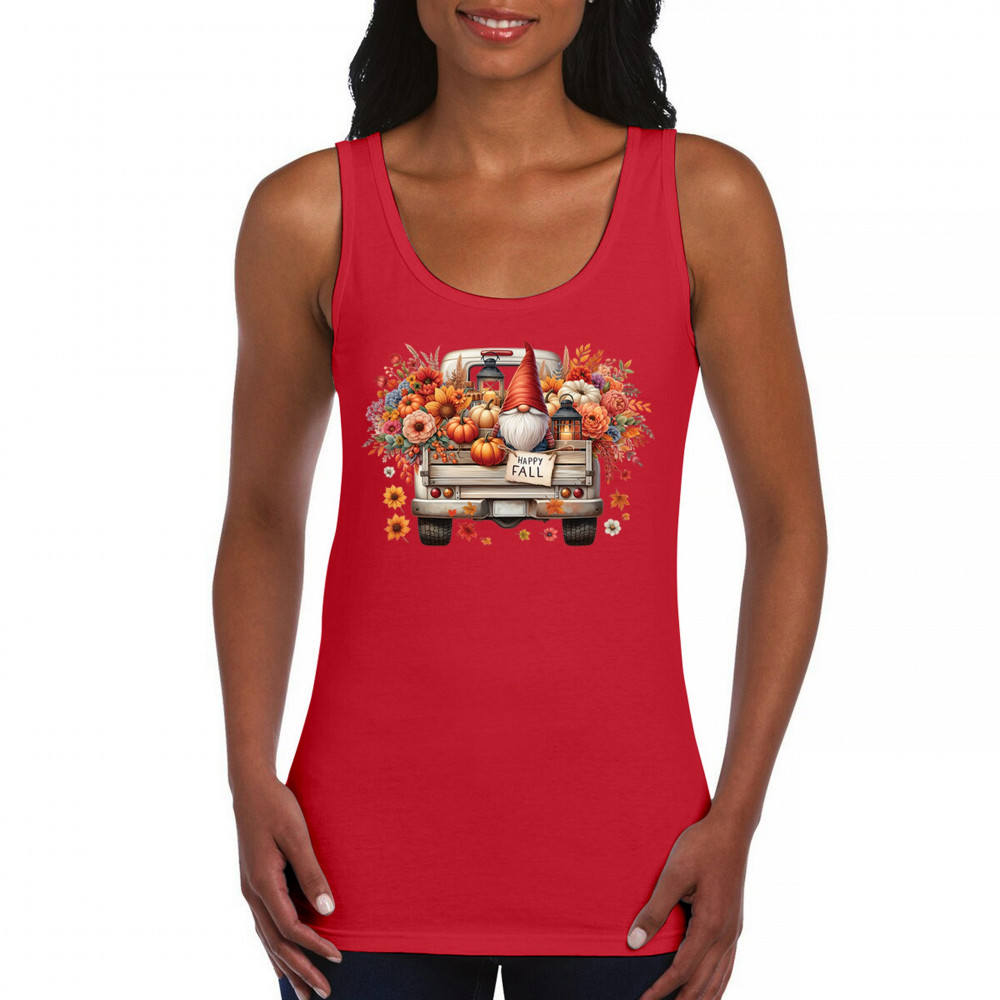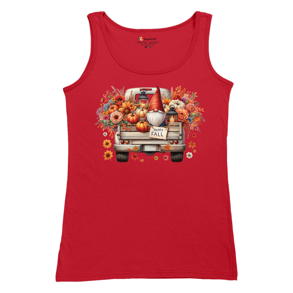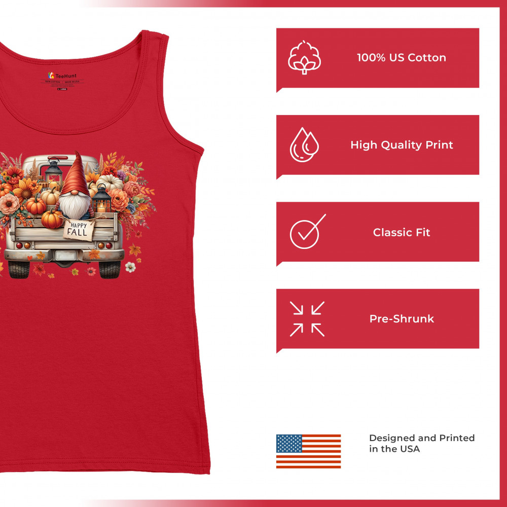 Rustic gnome truck design with pumpkins, wildflowers, and lantern glow. Perfect for Thanksgiving Day, farmhouse harvest, and cozy autumn style.