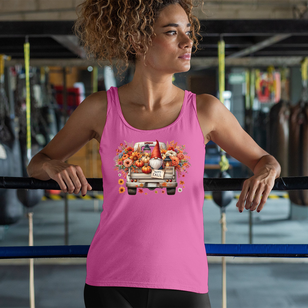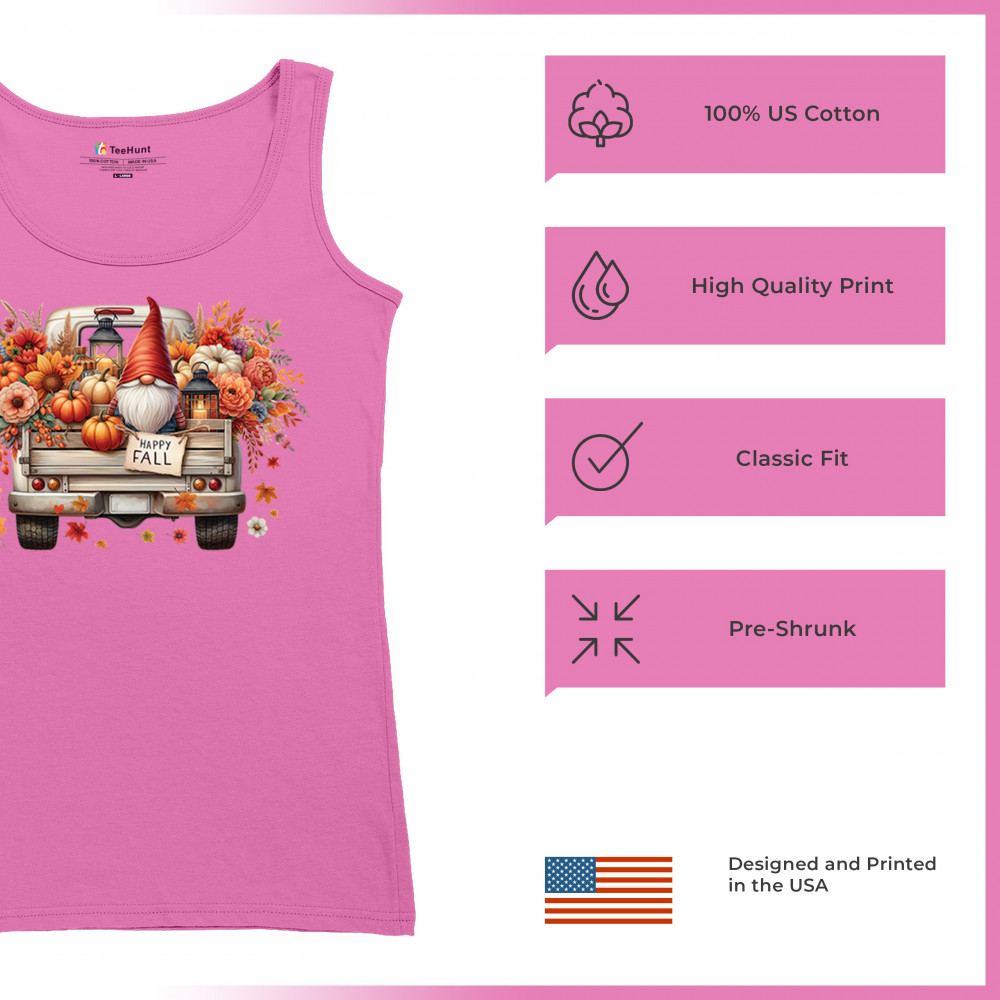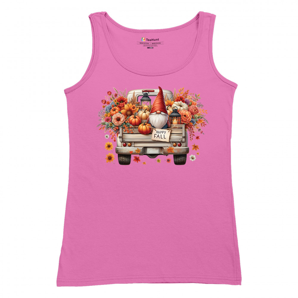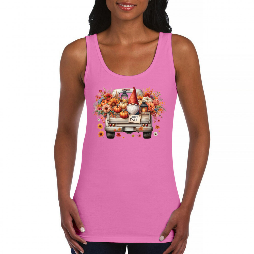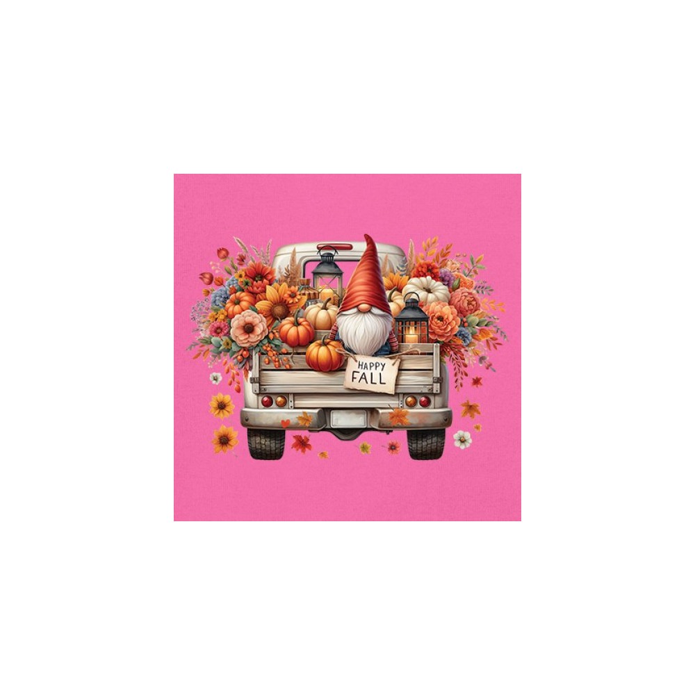 Rustic gnome truck design with pumpkins, wildflowers, and lantern glow. Perfect for Thanksgiving Day, farmhouse harvest, and cozy autumn style.