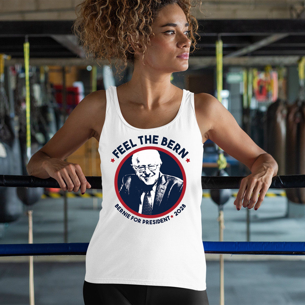 Show your commitment to democratic reform with this "Feel the Bern – Bernie for President 2028" design. Featuring Bernie Sanders’ portrait and patriotic colors, it’s perfect for political events, marches, or campaign volunteering. Wear it with pride at rallies, protests, or voter registration drives to back the progressive movement.