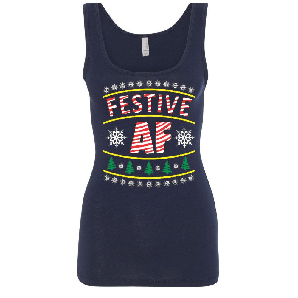 FESTIVE AF women's tank top merry christmas xmas funny holiday ho ho ho top navy blue