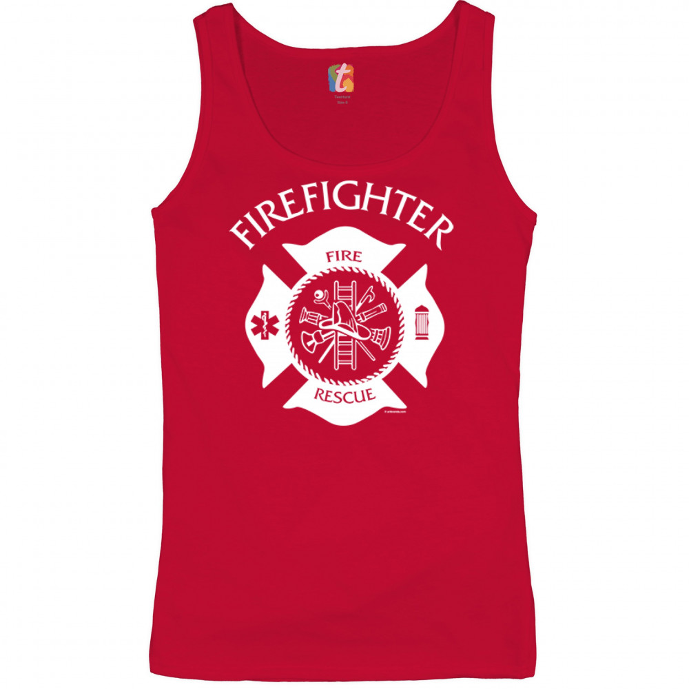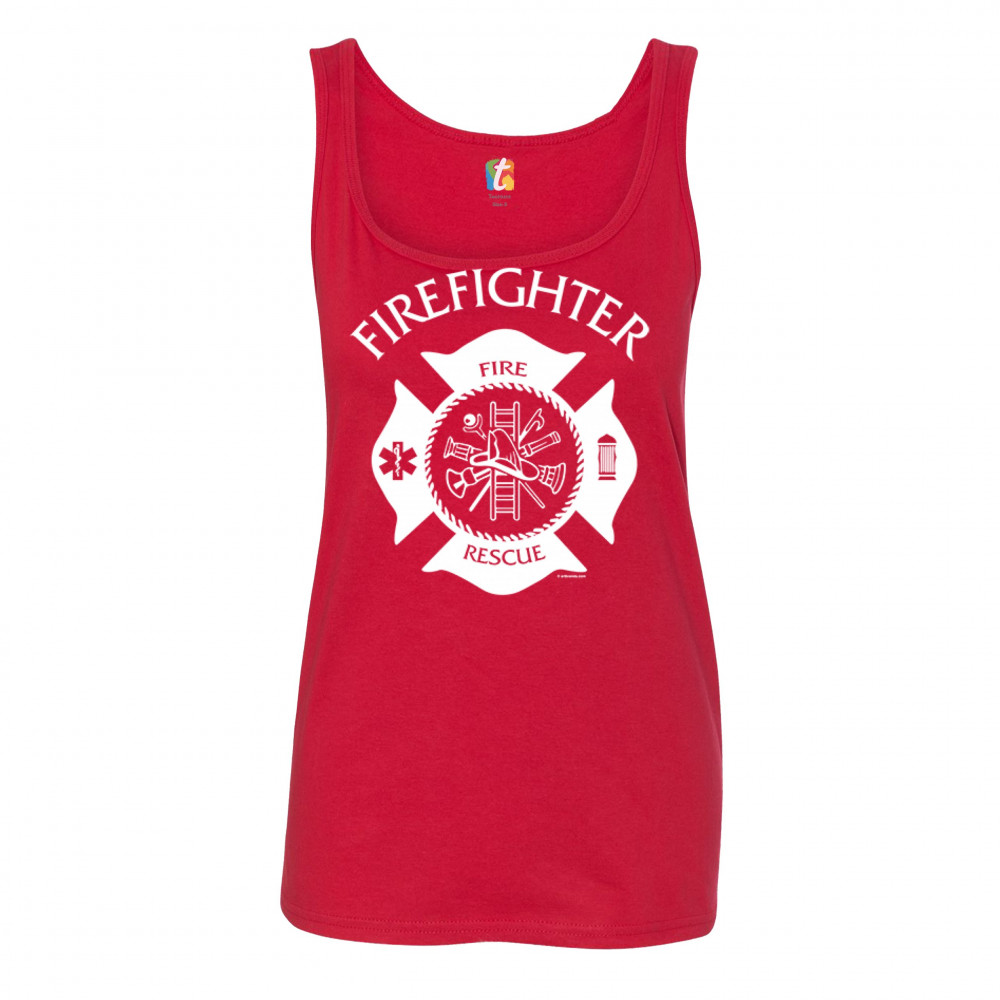 FIREFIGHTER EMBLEM women's tank top fire and rescue first responders red