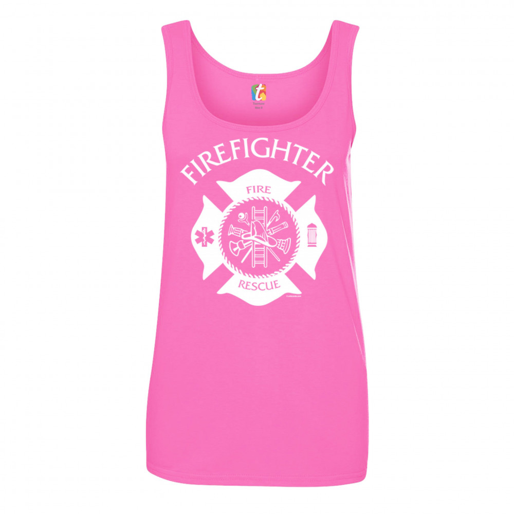 FIREFIGHTER EMBLEM women's tank top fire and rescue first responders pink