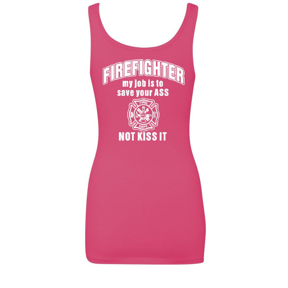 FIREFIGHTER MY JOB IS TO SAVE YOUR ASS women's tank top funny top pink
