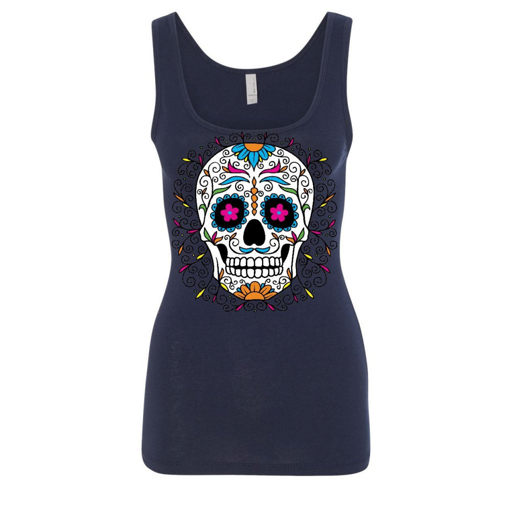 FLORAL SUGAR SKULL DAY OF THE DEAD tank top dia de los muertos top navy blue