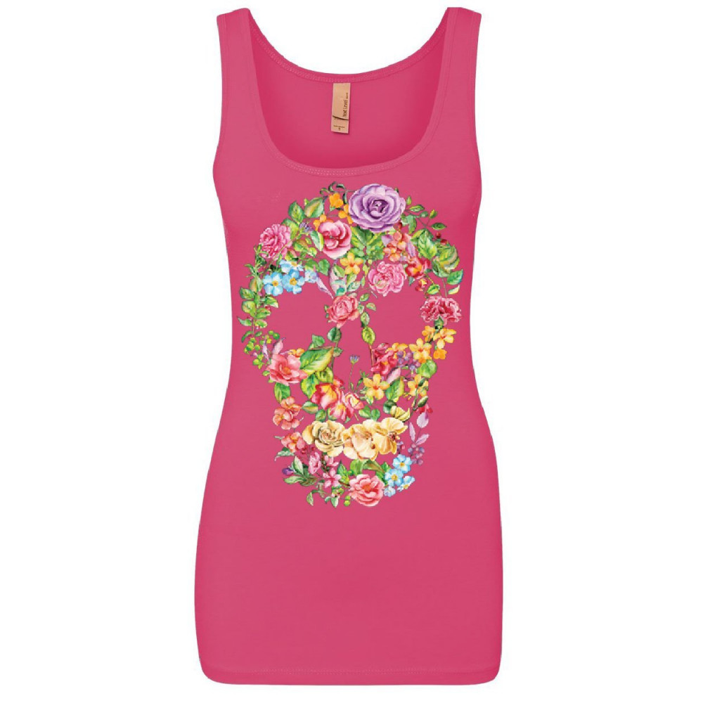 FLOWER SKULL women's tank top sugar skull calavera dia de los muertos top pink