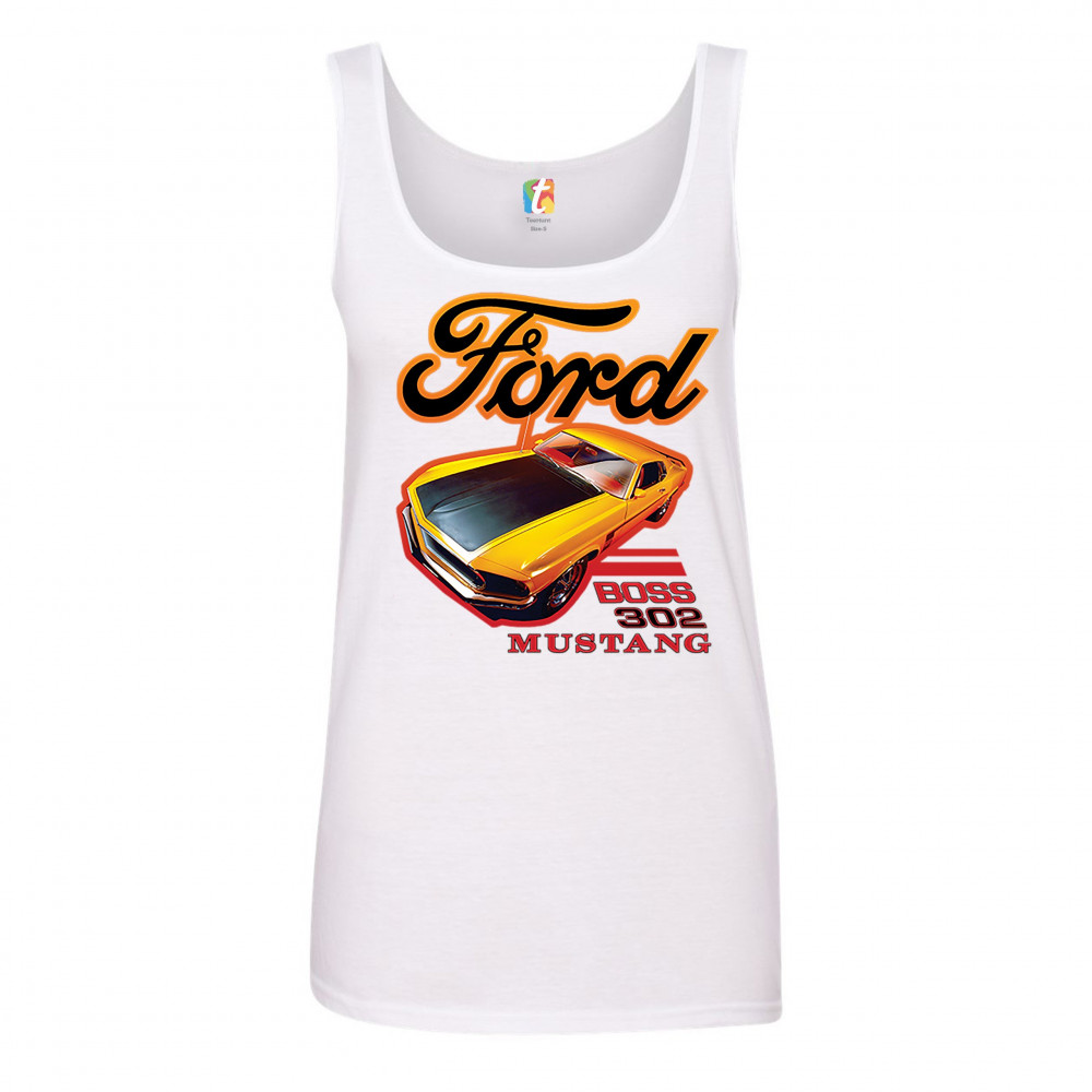 FORD BOSS 302 MUSTANG women's tank top vintage american muscle car licensed white