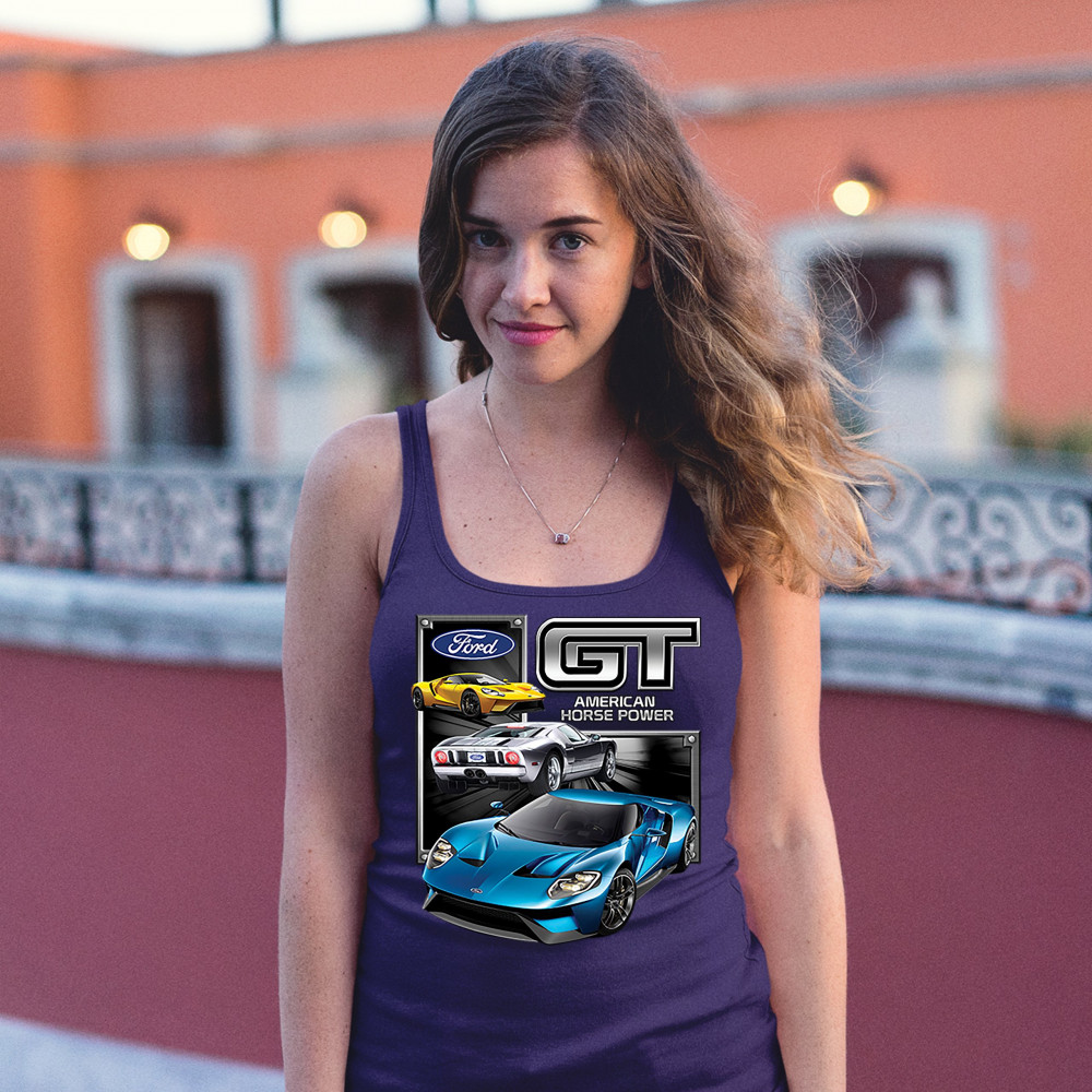 FORD GT AMERICAN HORSE POWER women's tank top sports race car licensed navy blue