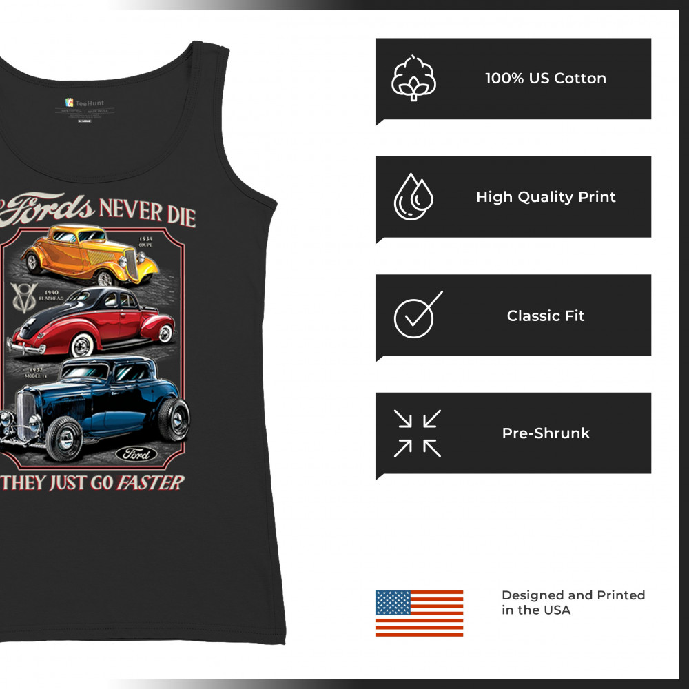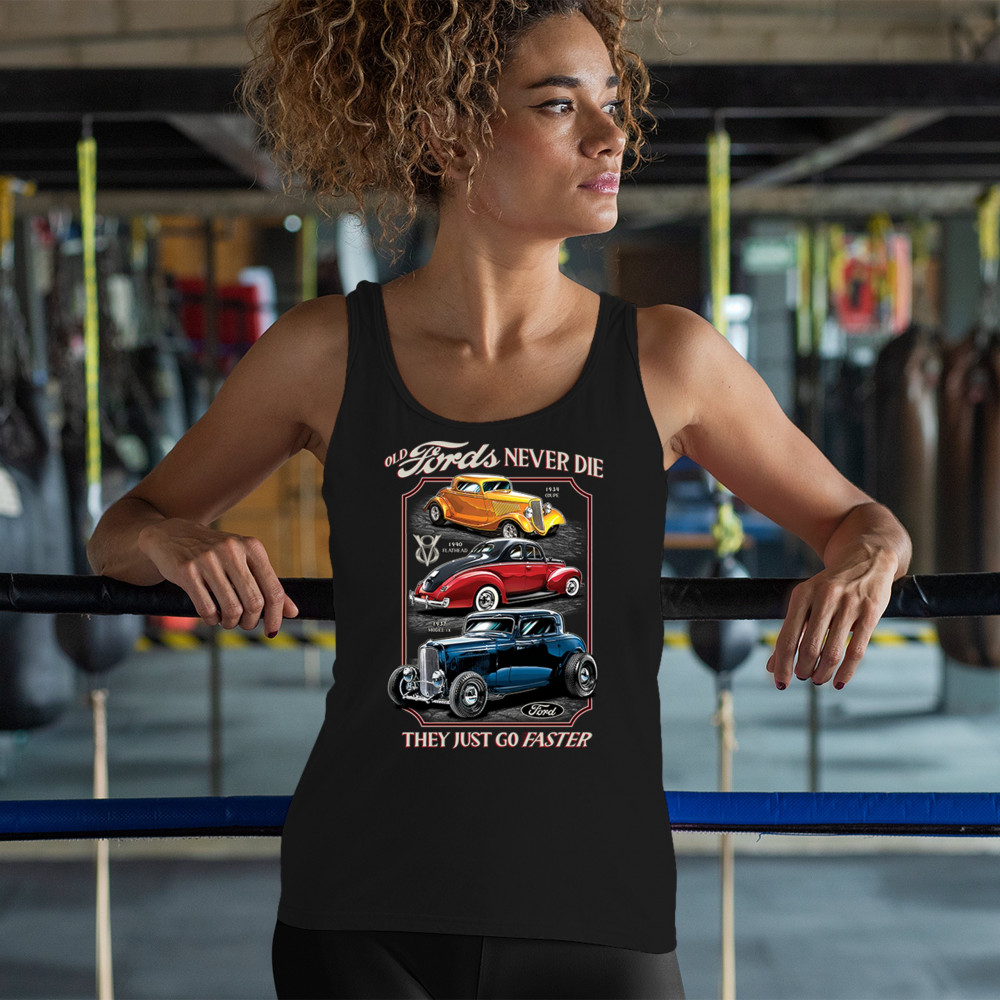 FORD HOT ROD LEGENDS women's tank top 1932 model b 1934 coupe '40 flathead black