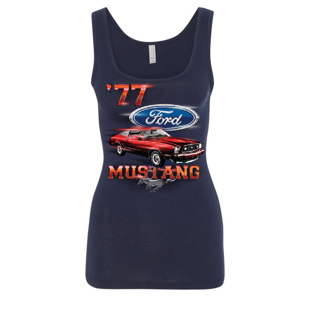 FORD MUSTANG '77 women's tank top american classic muscle car top navy blue