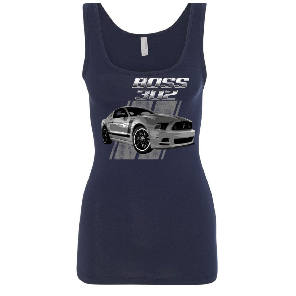 FORD MUSTANG BOSS 302 women's tank top 50 years anniversary muscle car top navy blue