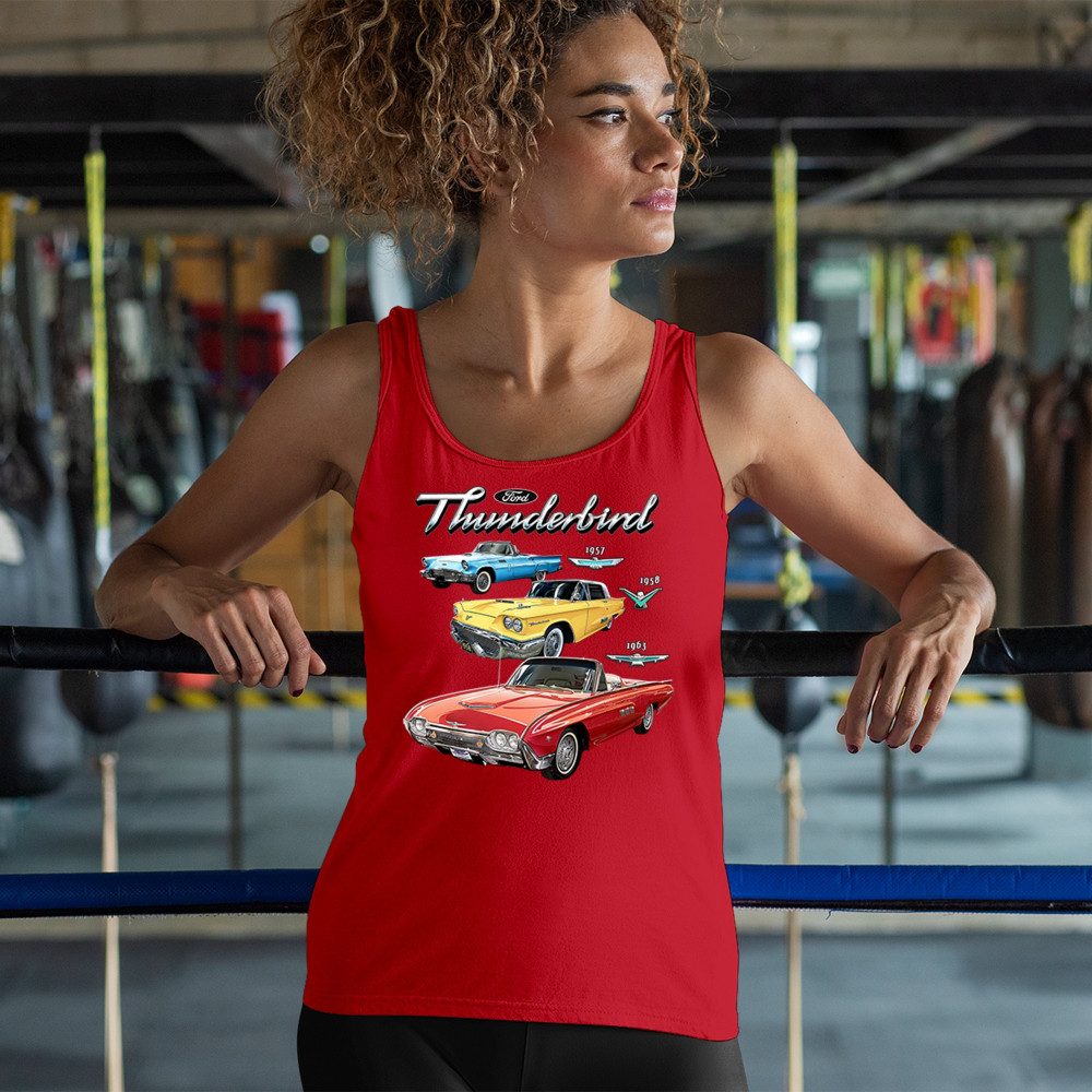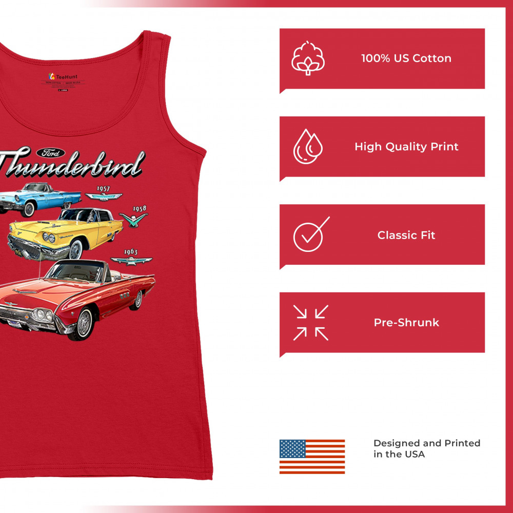 Iconic Ford Thunderbird design with 1957, 1958, and 1963 models. A vintage tribute for car collectors and American muscle fans.