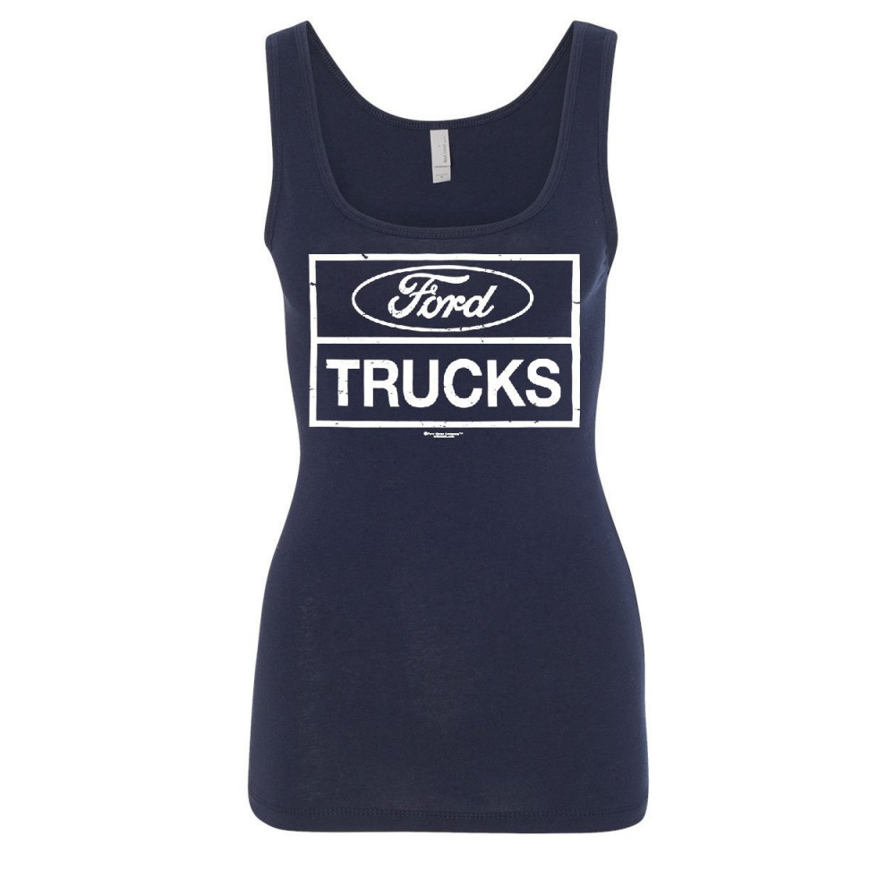 DISTRESSED FORD TRUCKS women's tank top f150 american pick up top navy blue