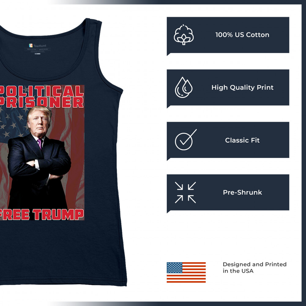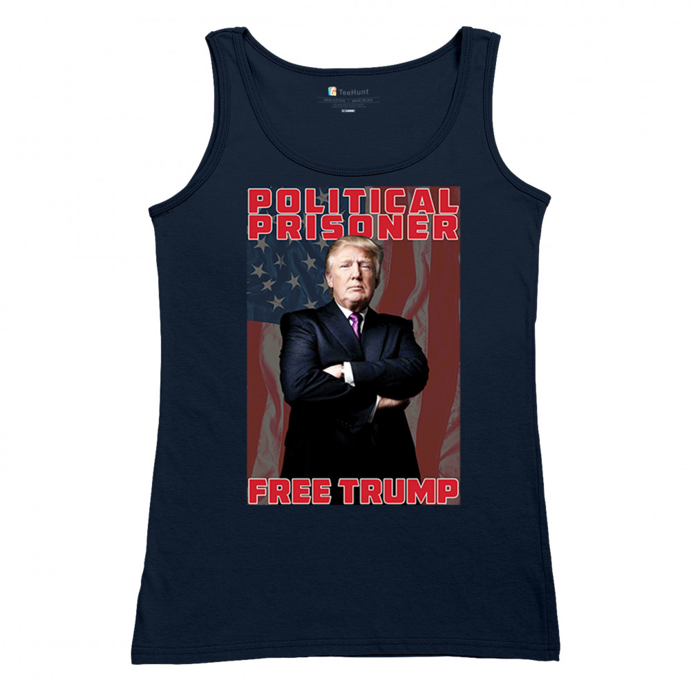 Show your support with the "Political Prisoner Free Trump" design, featuring Trump against an American flag. Perfect for conservative patriots and Trump supporters.