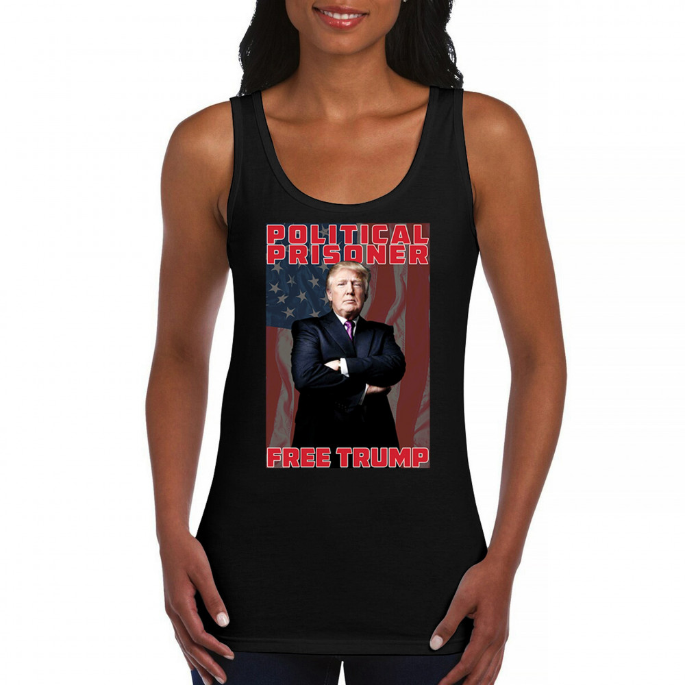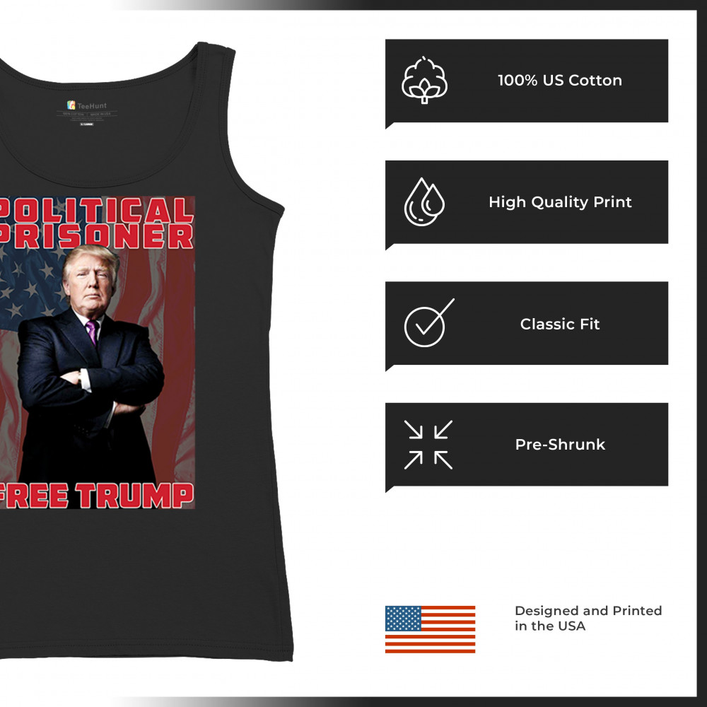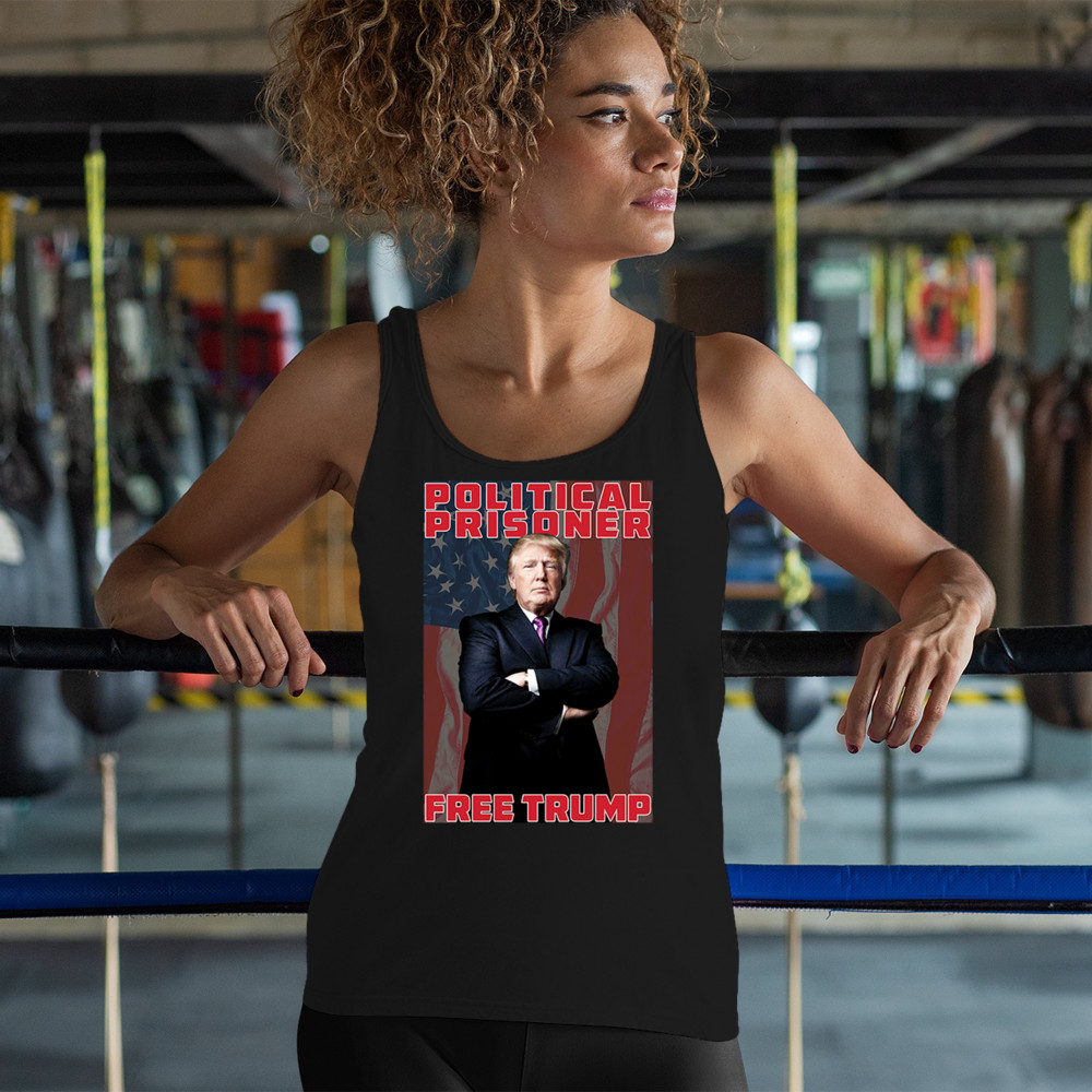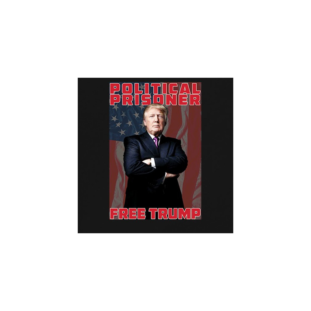 Show your support with the "Political Prisoner Free Trump" design, featuring Trump against an American flag. Perfect for conservative patriots and Trump supporters.