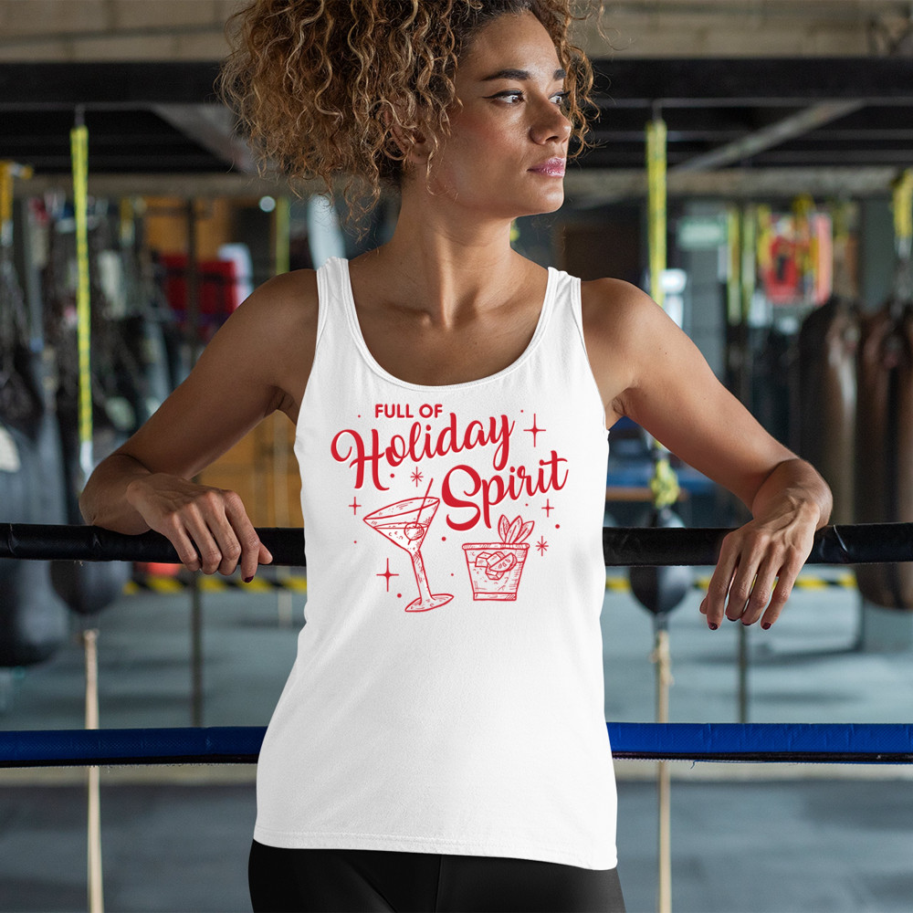 Bring the festive vibes to your holiday season with the "Full of Holiday Spirit" design. This playful print is perfect for office parties, secret Santa gifts, and cozy gatherings, adding a fun and jolly touch to any holiday event. Ideal for matching pajamas, ugly sweater contests, or as a unique present, it’s crafted to spread cheer and humor. From Xmas morning to holiday parties, this design is all about making merry memories with a festive flair.
