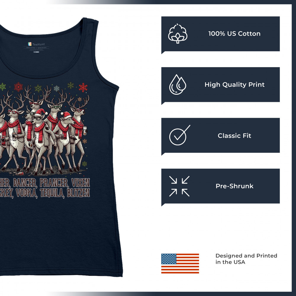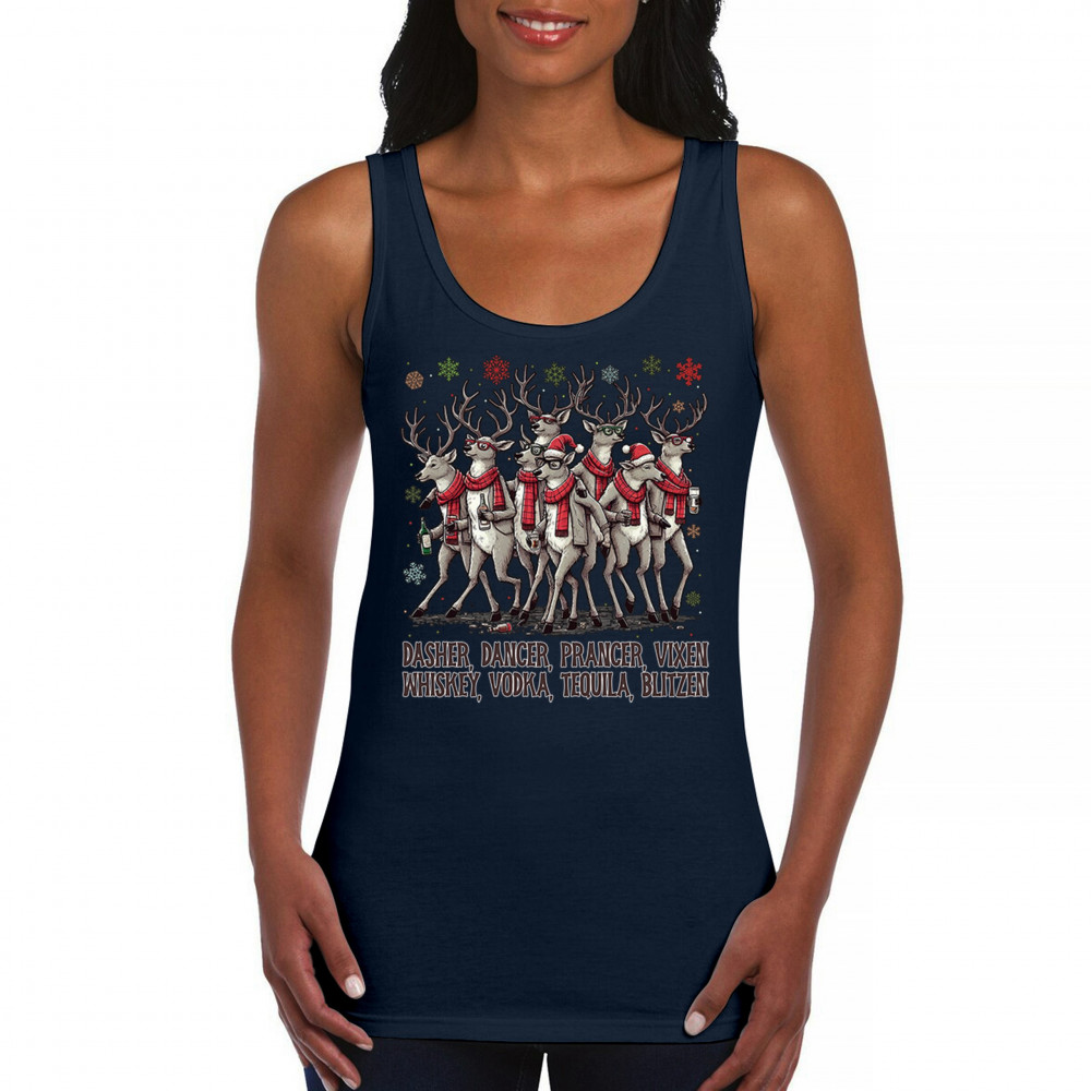 Funny drinking-reindeer Christmas design perfect for parties, bar crawls, and festive adult humor. Great for holiday laughs and spirited winter fun.