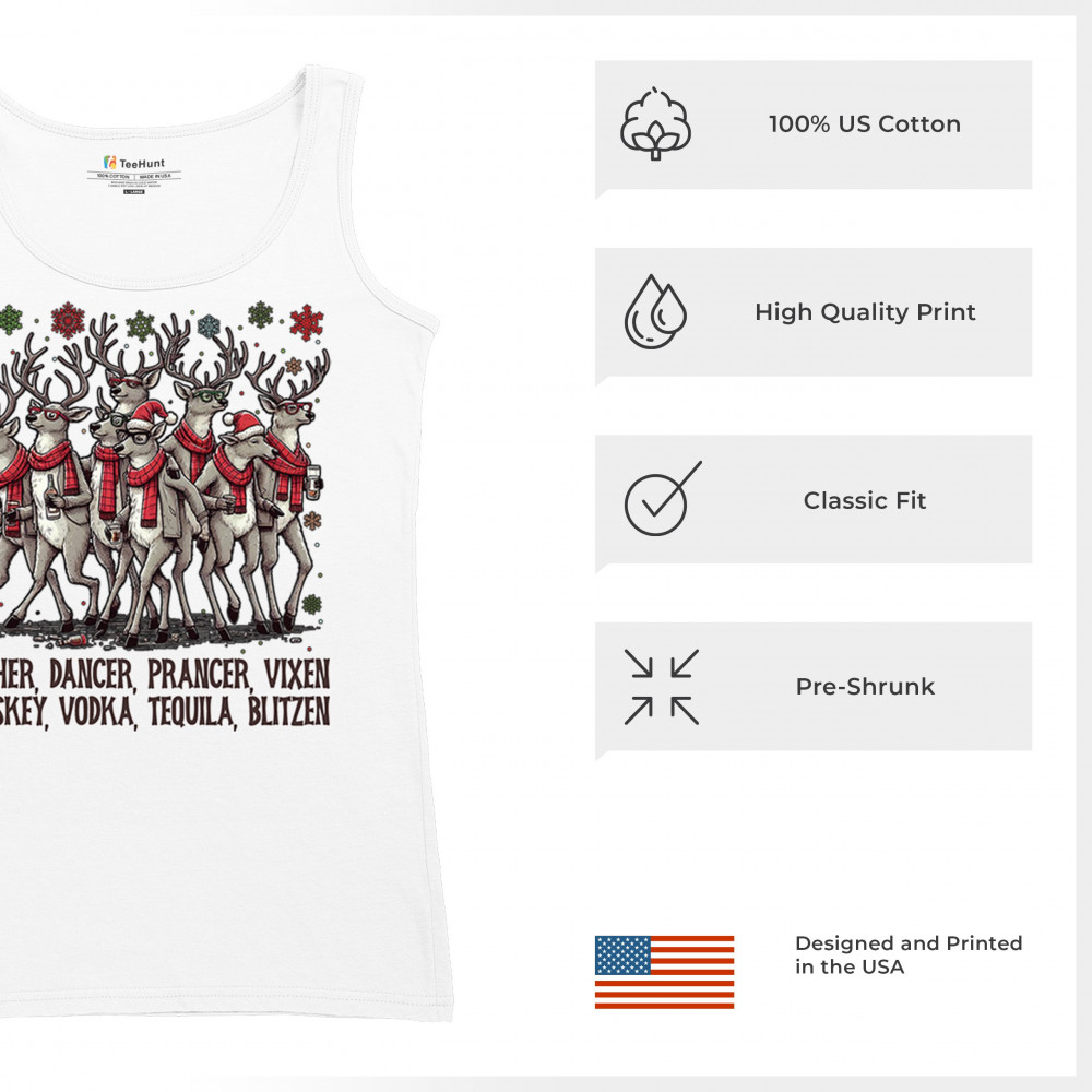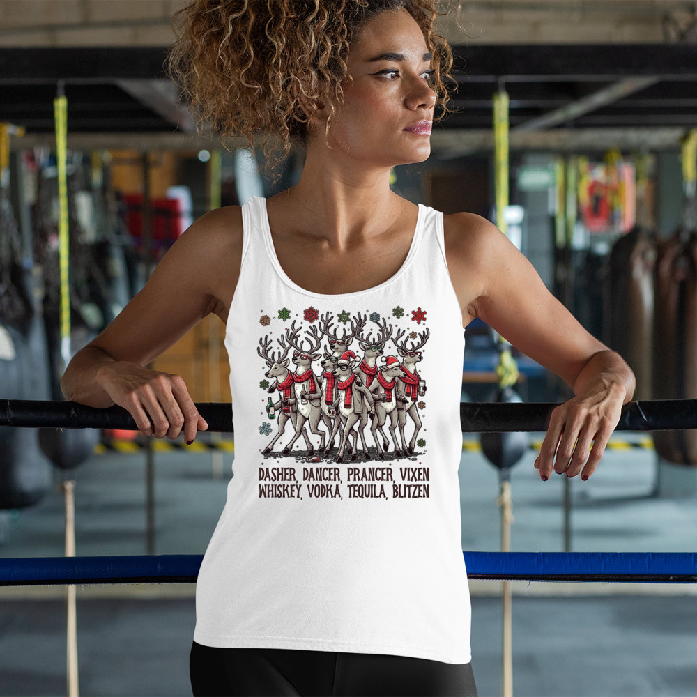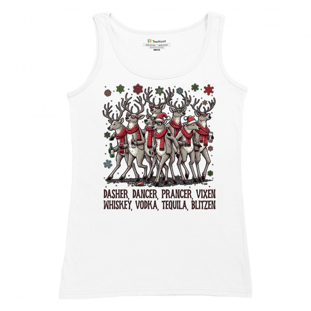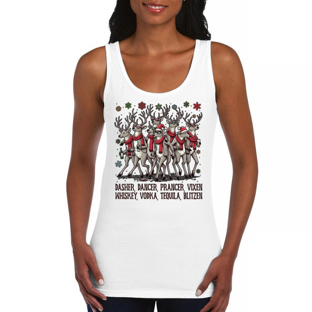 This funny holiday design features a squad of drinking reindeer carrying bottles and dressed in scarves for the ultimate Christmas party vibe. Great for bar crawls, office parties, winter gatherings, adult holiday events, white elephant exchanges, festive nights out, and anyone who loves spirited Christmas humor with a cheeky personality.