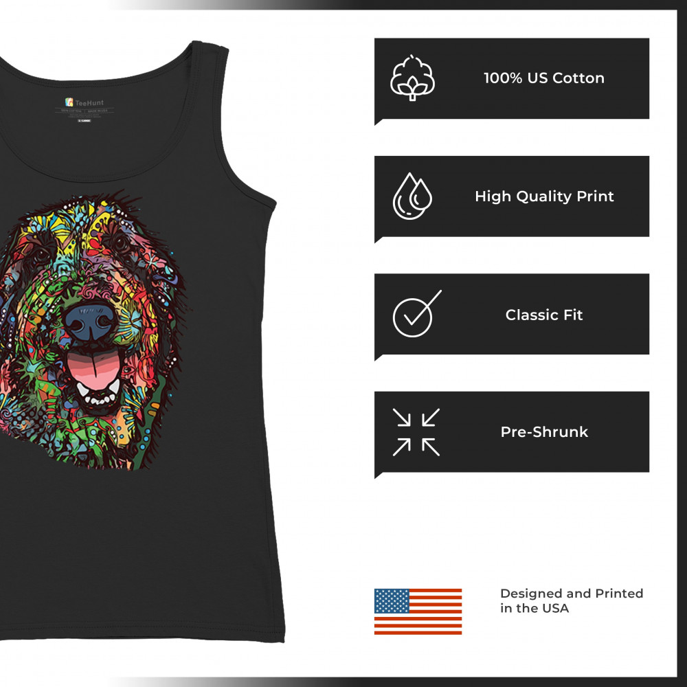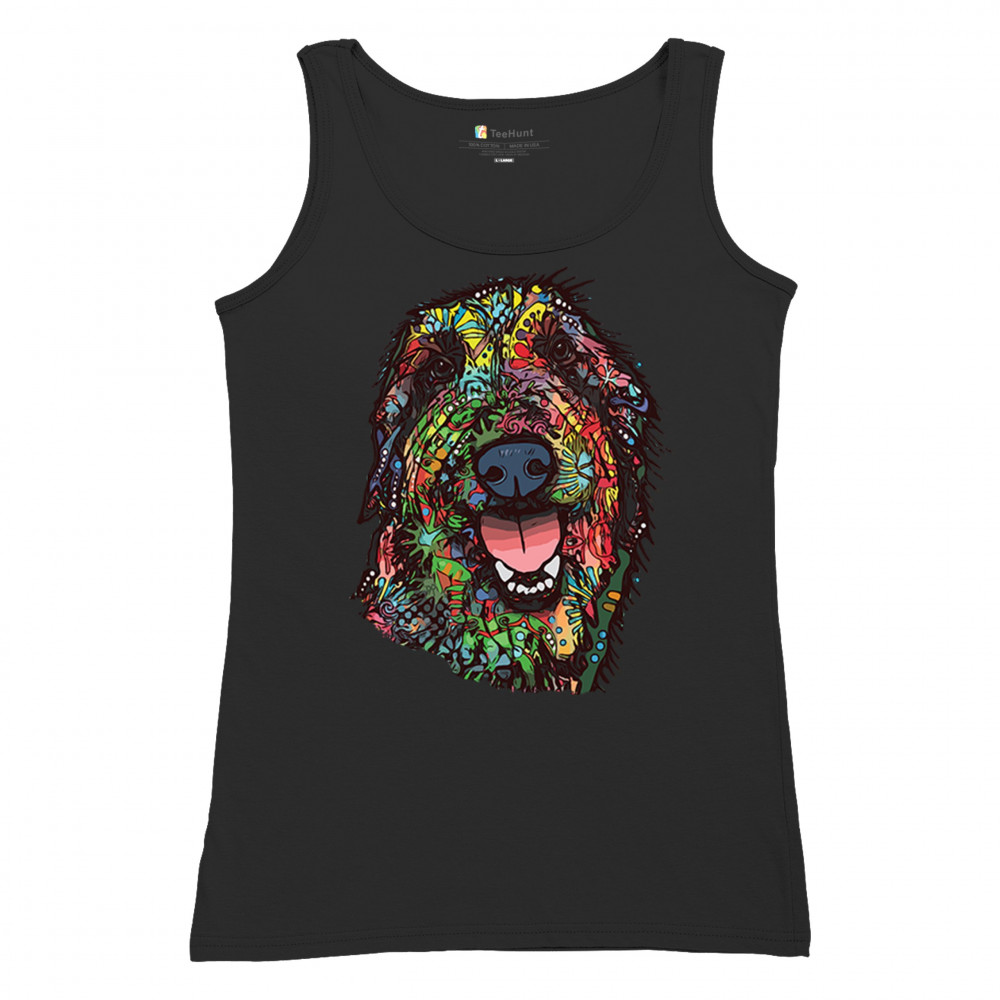 FUNNY FEELING HAPPY DOG FACE women's tank top dean russo cheerful pet black