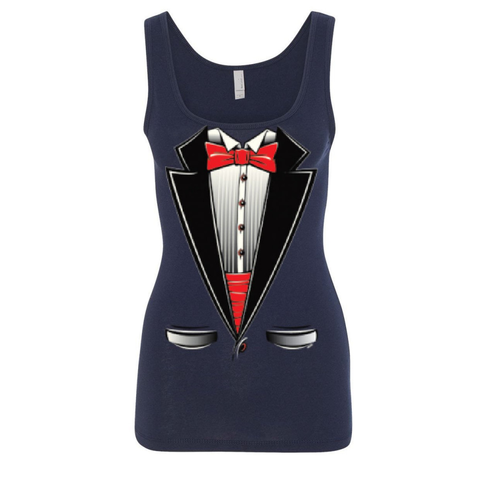 FUNNY TUXEDO BOW TIE tank top tux wedding party top navy blue