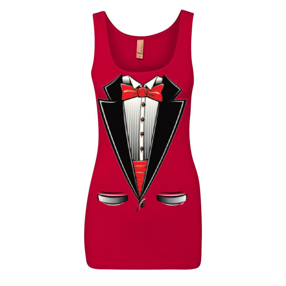 FUNNY TUXEDO BOW TIE tank top tux wedding party top red