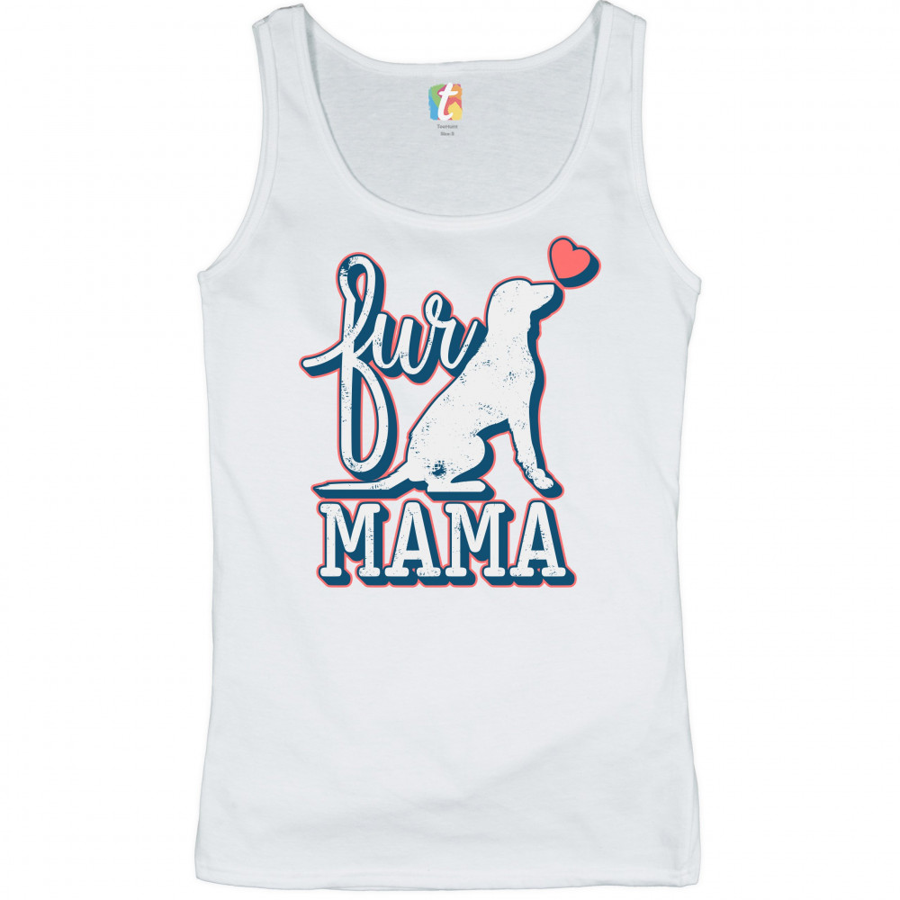 FUR MAMA women's tank top i love my dog pet owner mother's day white