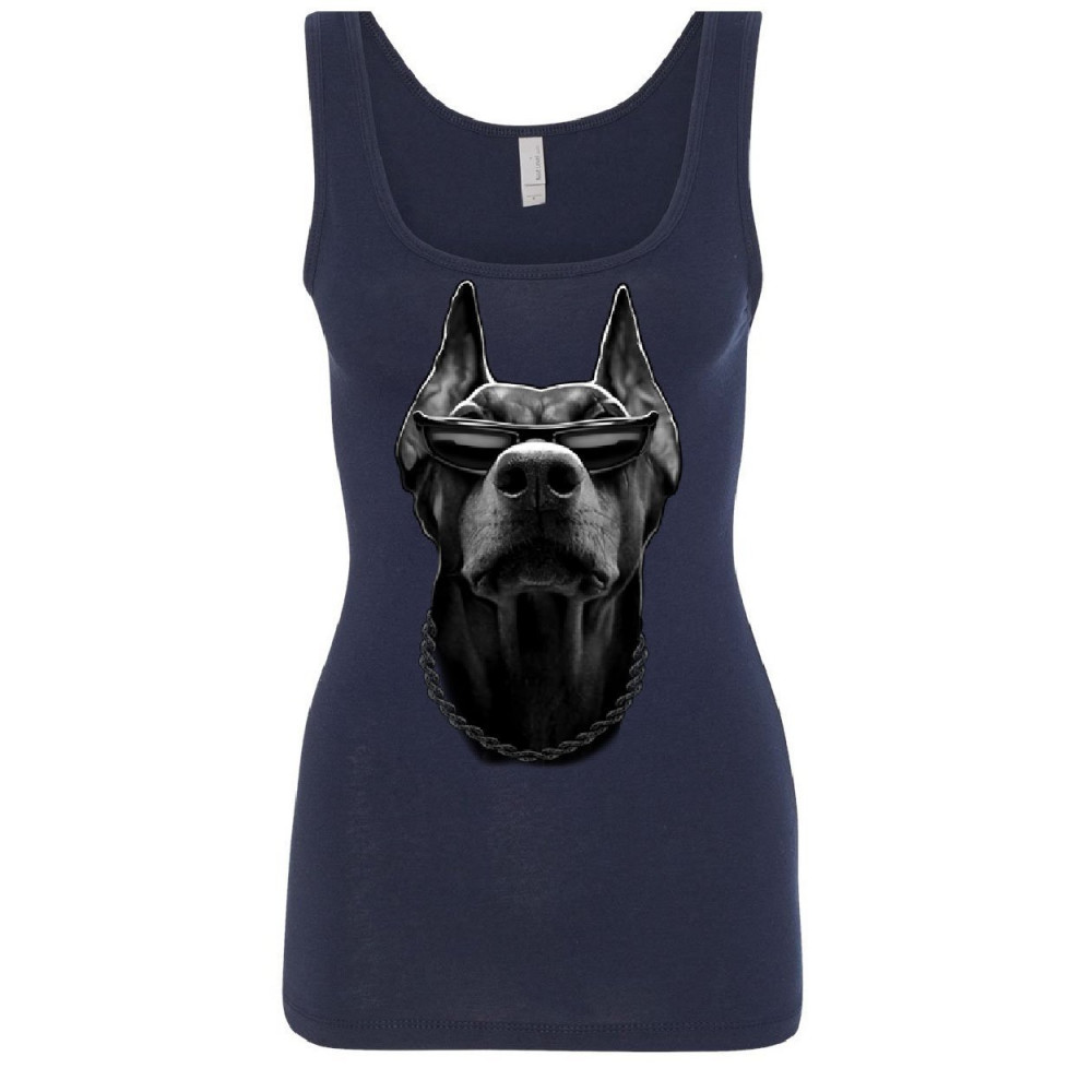 GANGSTA DOBERMAN WITH GLASSES women's tank top pet dog lovers swag badass top navy blue