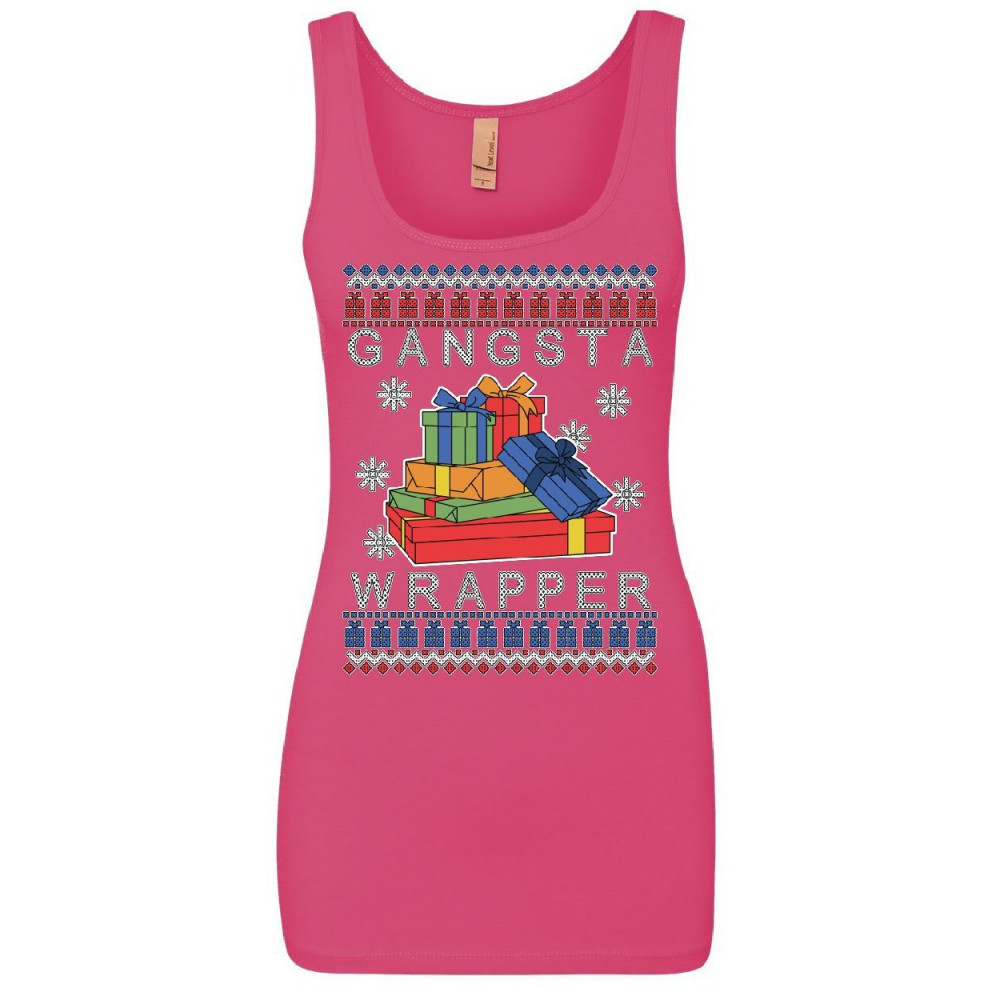 GANGSTA WRAPPER ugly sweater women's tank top merry jolly christmas xmas top pink
