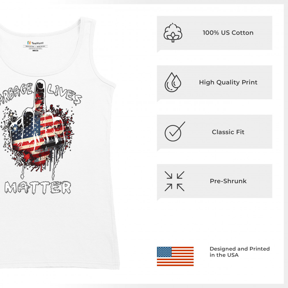 The "Garbage Lives Matter" design is a fearless expression of American values and pride. With the American flag as its centerpiece, this bold and patriotic design speaks volumes to Trump supporters, conservatives, and those who believe in the people's mandate. Join the fight for America First, never surrender, and celebrate the Red Wave movement with this striking statement piece.