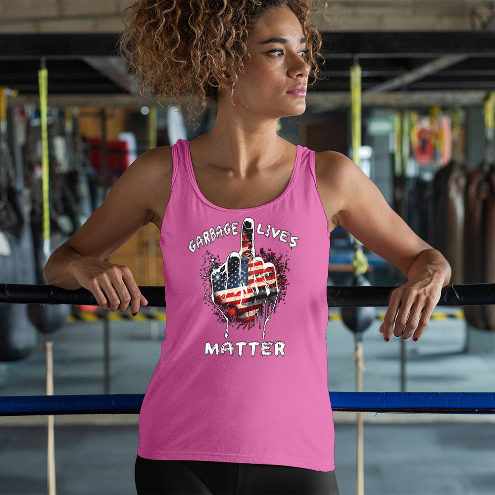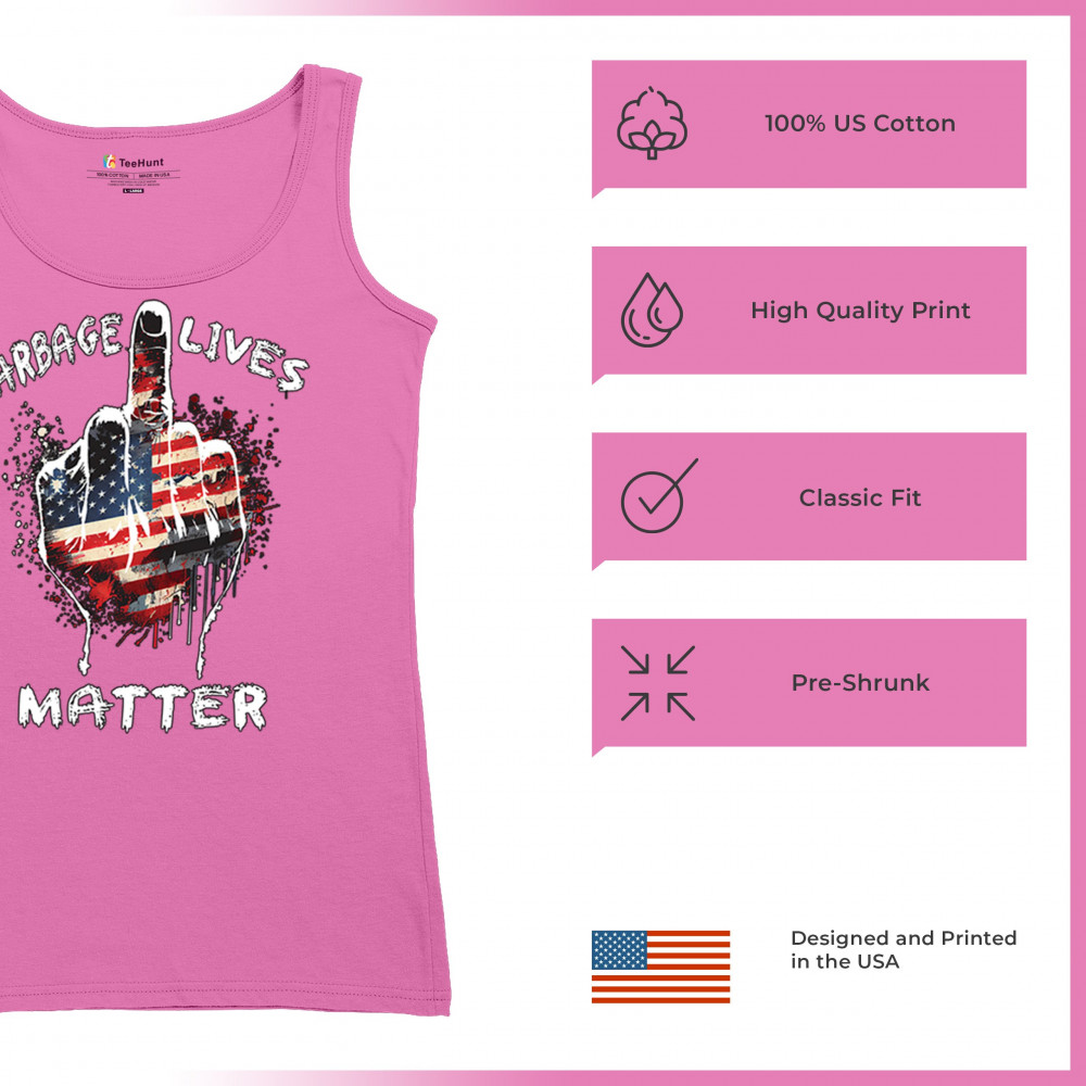 The "Garbage Lives Matter" design is a fearless expression of American values and pride. With the American flag as its centerpiece, this bold and patriotic design speaks volumes to Trump supporters, conservatives, and those who believe in the people's mandate. Join the fight for America First, never surrender, and celebrate the Red Wave movement with this striking statement piece.